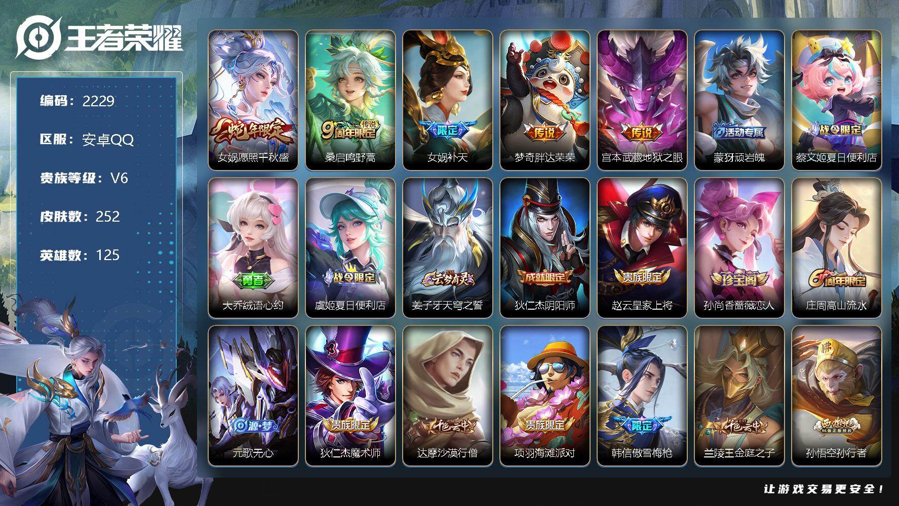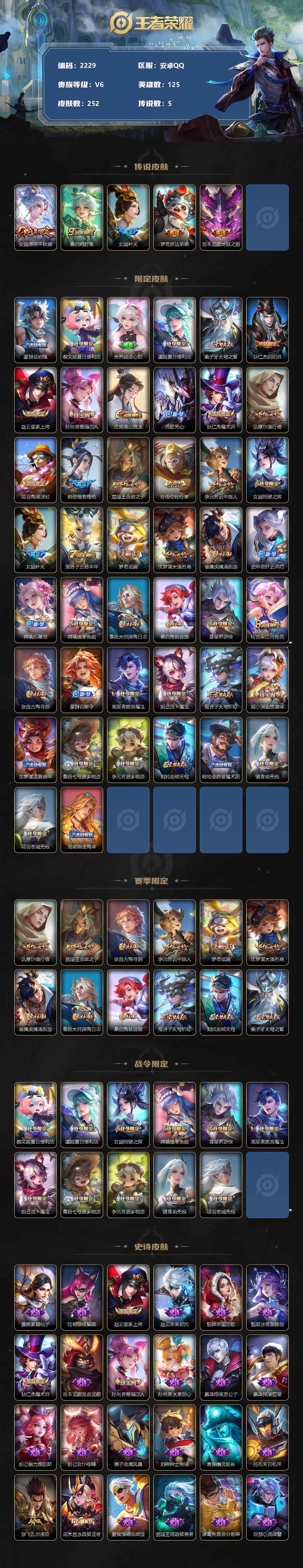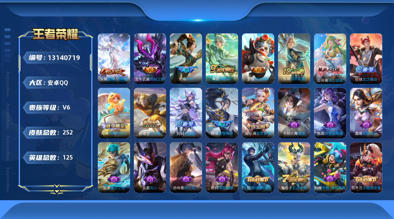 [13140719]安卓Q-V4-最强王者段位-125英雄-252皮肤-0典藏-0珍品无双-0无双-0珍品传说-5传说-66史诗