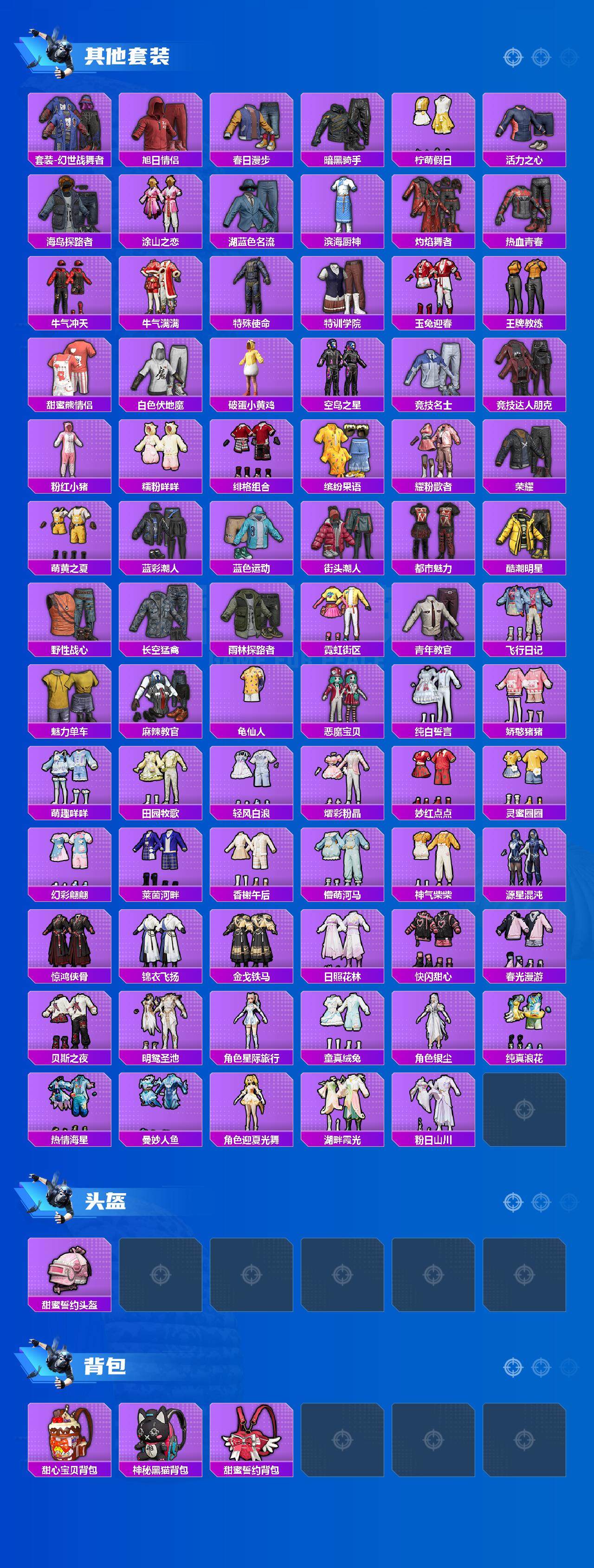 【稀有套装】:套装-龟仙人,套装-航行童话,套装-绒宝小鹅,套装-巳巳如意,套装-小鸟芋圆,套装-雏菊兔兔,套装-萝兰蝴蝶,套装-小熊娃娃,套装-糖糖葫芦,套装-青团波波,套装-棉花软糖,角色-俏兔智灵,套装-燕燕于飞,套装-鱼渊荷华,套装-晶辉守护,角色-糖霜甜心,套装-粉恋花,套装-紫幽梦,套装-蓝冰羽,套装-星影赞美诗,套装-彩虹兔,套装-云朵鹅,套装-雪绒豹,套装-蓝海鲸歌,角色-绛羽幽主,套装-朱霞炽焰,套装-凌霄紫焰