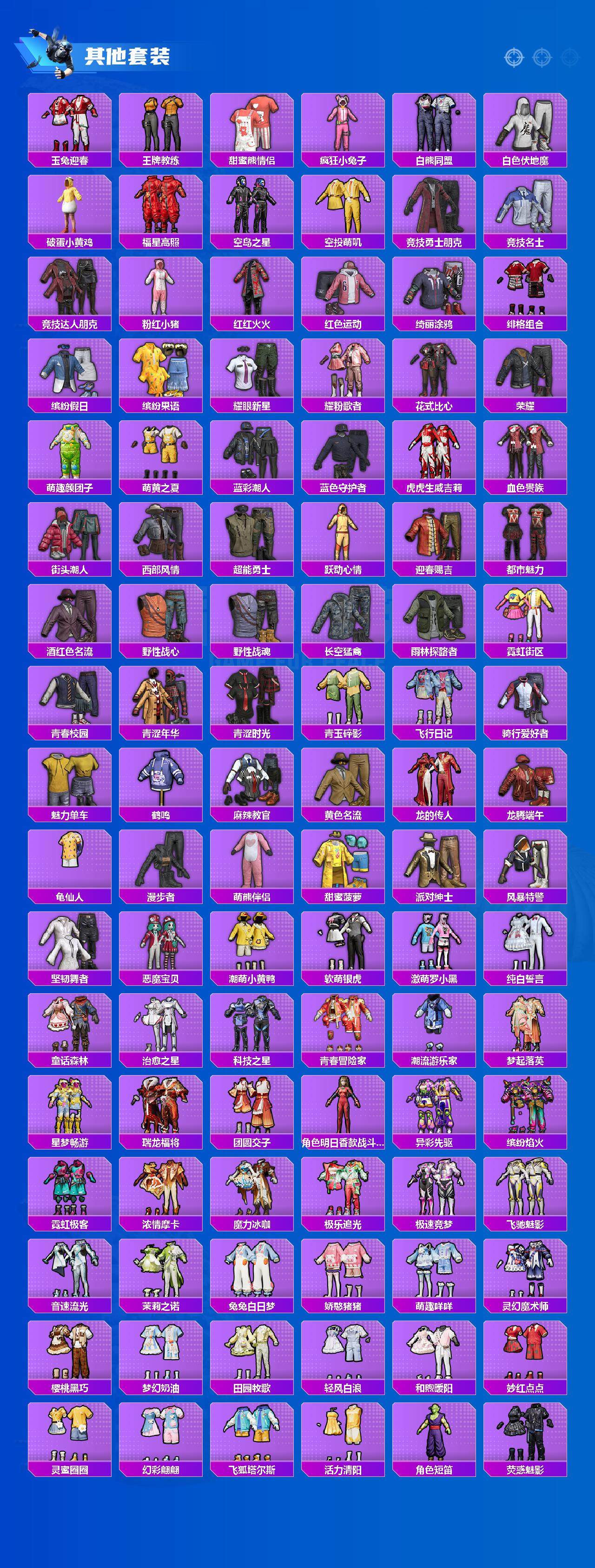 【粉色套装】:粉装-宝贝奶油派,粉装-缤纷油彩,粉装-新星烈龙,粉装-馨动时刻,粉装-蜜桃特工,粉装-彩虹鹿灵,粉装-精灵娃娃,粉装-酣梦娃娃,粉装-焦糖拿铁,粉装-碧影闪光,粉装-海螺星光,粉装-第五大道,角色-女娲灵识,角色-凤凰座 一辉,粉装-星穹咏叹调,粉装-幻彩电音