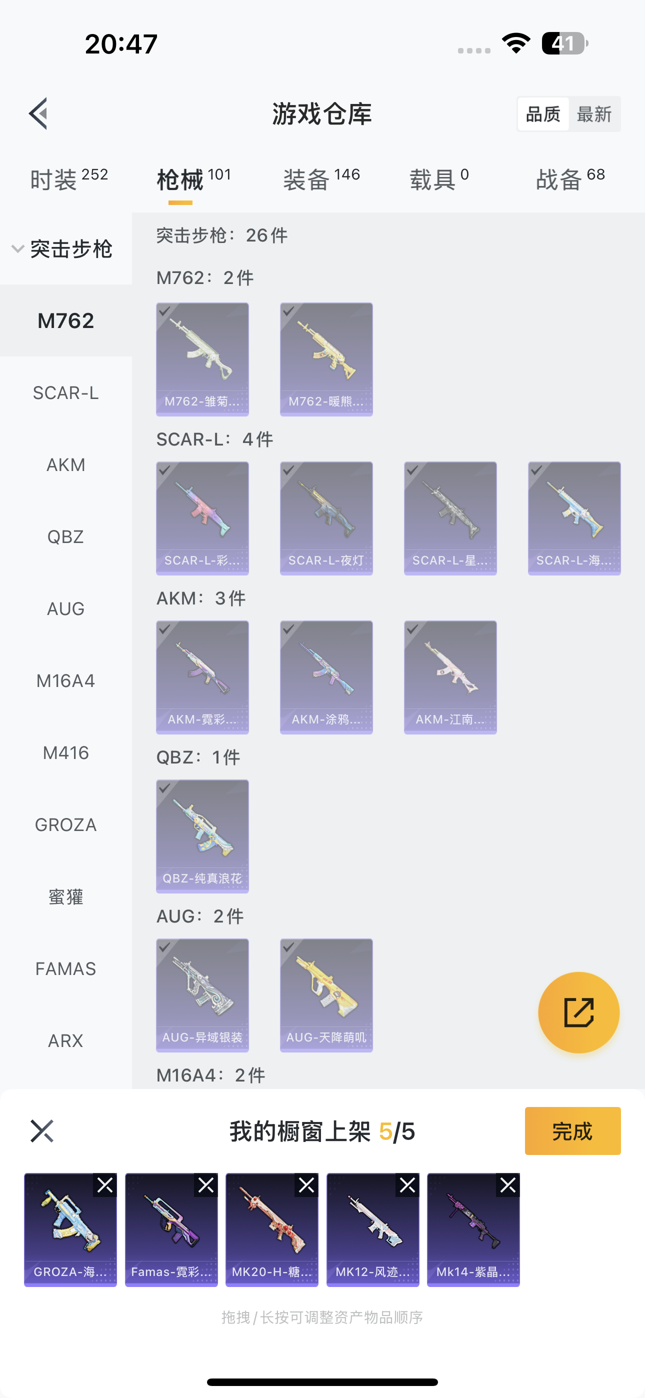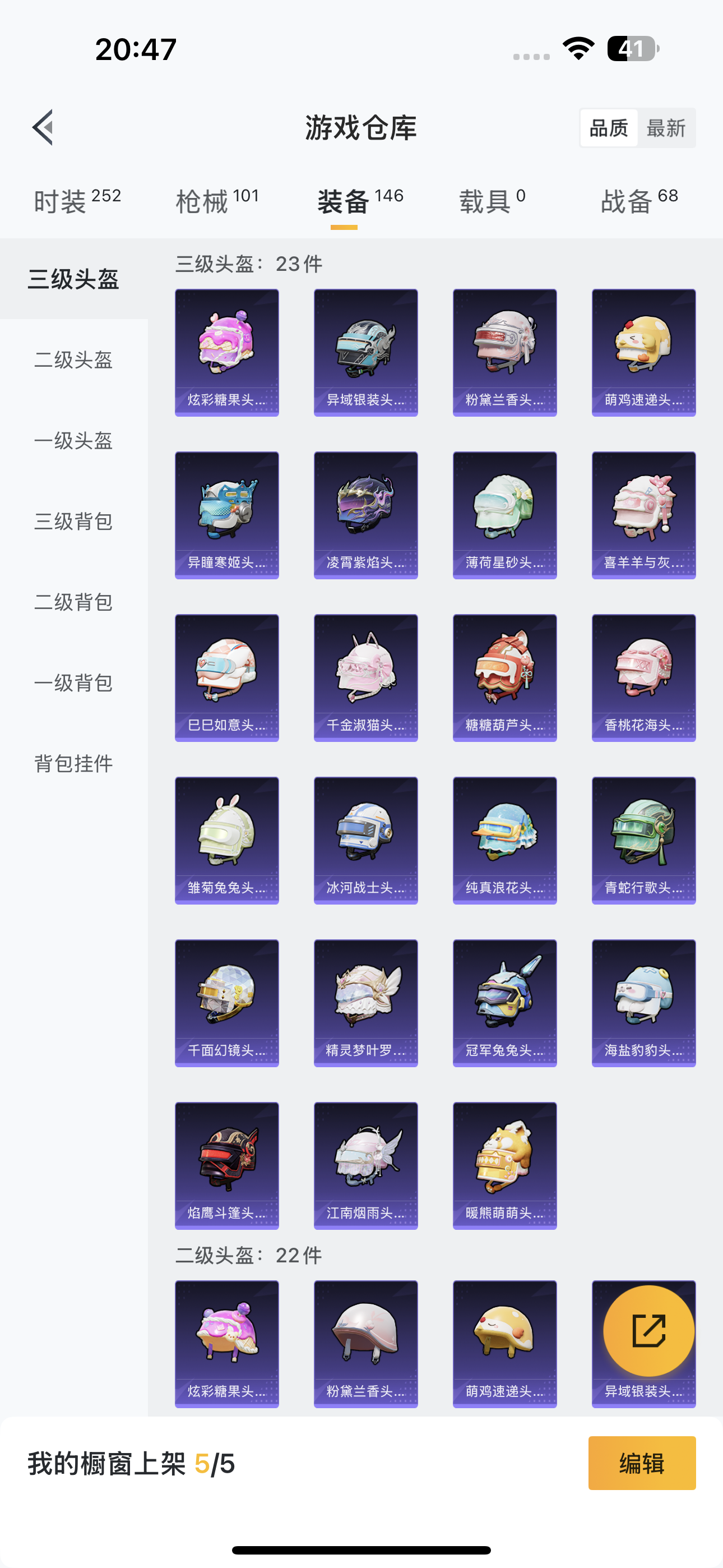 - [13101206]安卓 手Q-2神装-18粉装-10特效枪-8载具-6粉色飞行器-92108热力值-16王牌印记-177套装-224枪皮 【红色神装等级】:魔童闹海-哪吒(二级),角色-银枪赵云(一级) 【红色角色神装】:魔童闹海-哪吒,角色-银枪赵云 【热门品类】:套装-火箭少女101,套装-深海小丑鱼,角色-军刀雅典娜,角色-2B战斗服款,角色-2P战斗服款,角色-忠猛周仓,角色-忠真马岱,角色-忠义严颜,套装-六号树人,套装-龟仙人,套装-暗影哥特,套装-糯粉咩咩,大砍刀-青龙偃月刀,撬棍-龙胆亮银枪 【粉色载具】:玛莎拉蒂Quattroporte(夜幕蓝),乔治巴顿战车(乳石白),宾利欧陆GT敞篷(火焰橘),迈凯伦570S(天际蓝),Formula E Gen2(幽光蓝),极速兔兔车,僚机-萌兔起飞,僚机-萌酷奶龙,赤兔,照夜玉狮子 【粉色套装】:粉装-新星烈龙,粉装-焦糖拿铁,粉装-筑梦精灵,角色-复仇流浪者,粉装-垂柳戏鸭,粉装-彩虹甜喵,蜀山剑侠-李逍遥,女娲后裔-赵灵儿,粉装-青空秋雨,粉装-第五大道,粉装-挚爱序曲,角色-小可学妹,角色-幻影,粉装-炫光之旅,角色-茉莉星,角色-宙之时溯,粉装-莲影清波,角色-羊梦糖心 【粉色枪皮等级】:AKM-绿萝繁花(五级),SCAR-L-纯梦嫁纱(七级),M416-至情至圣(四级),AUG-超新星(六级),P90-能量风暴(一级),P90-魔童闹海 敖丙(三级),Kar98K-巳巳如意(五级),M24-莲影清波(一级),DP-28-豹影疾电(五级) 【粉色枪皮】:AKM-绿萝繁花,SCAR-L-纯梦嫁纱,M416-至情至圣,AUG-超新星,P90-能量风暴,P90-魔童闹海 敖丙,Kar98K-巳巳如意,M24-莲影清波,DP-28-豹影疾电,破片手榴弹-粉粉猫爪 【粉色飞行器】:激战未来飞行器,璀璨巨星飞行器,变形金刚飞行器,沙丘之主天马,飞天猪飞行器,灵珠游龙飞行器 【粉色降落伞】:伏魔团降落伞,焦糖拿铁降落伞,橘柚倾心降落伞,筑梦精灵降落伞,炙焰牛王降落伞,环太平洋降落伞,垂柳戏鸭降落伞,彩虹甜喵降落伞,暗夜鎏金降落伞,海螺星光降落伞,音爆索尼克降落伞,第五大道降落伞,黄族统领降落伞,璀璨巨星降落伞,未来歌姬降落伞,莲影清波降落伞,龙行天下降落伞,喜羊羊与灰太狼降落伞,魔童闹海 敖丙降落伞,异瞳寒姬降落伞 【稀有套装】