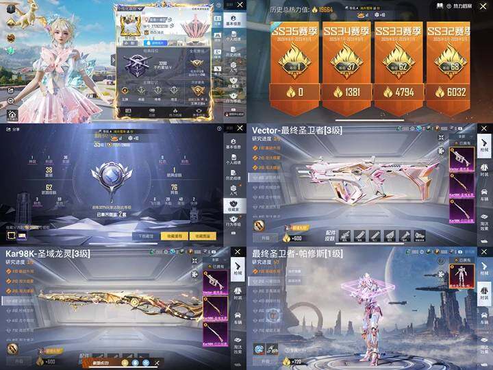 【粉色枪皮等级】:Vector-最终圣卫者(三级),Kar98K-巳巳如意(五级),Kar98K-圣域龙灵(三级)