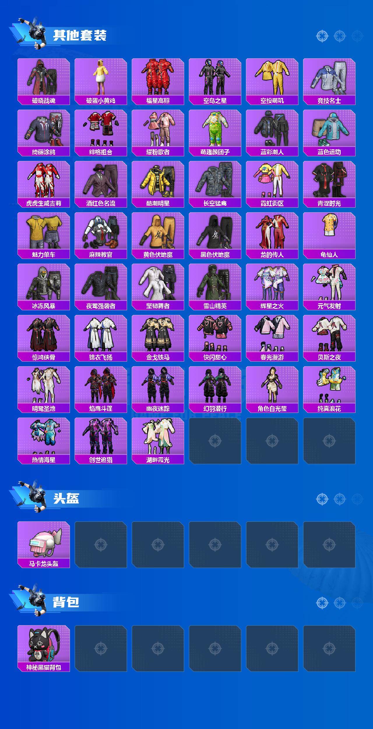 - PX_2095193-时装数: 126 枪械数: 198 战备数: 152 热门装扮: 奇异狩猎者,荒野猎神,宝贝奶油派,鹰眼刺客,东方飞龙,未来领航者 稀有枪皮: 七级AKM-甜心宝贝,六级M416-心之恋语,二级AKM-星际浪客,五级M416-电玩时刻,五级UMP45-量子极限,五级GROZA-镜光银凌,五级Kar98K-巳巳如意,五级AUG-暖羊咩咩,