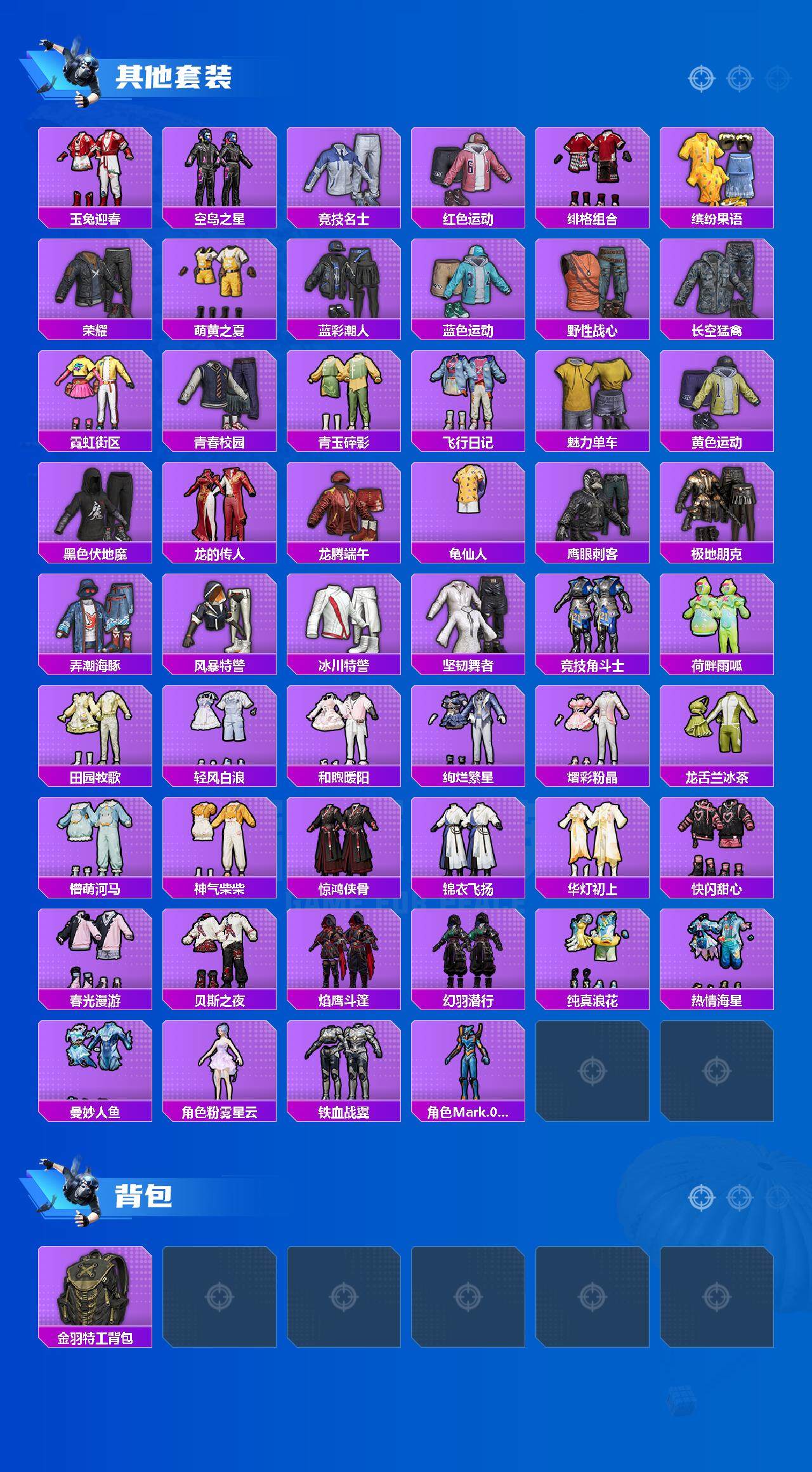 【稀有套装】:套装-龟仙人,套装-巳巳如意,套装-雏菊兔兔,套装-萝兰蝴蝶,套装-小熊娃娃,角色-达芬奇,套装-糖糖葫芦,套装-青团波波,套装-棉花软糖,角色-怀庆长公主,套装-燕燕于飞,套装-鱼渊荷华,角色-蜜桃派对,套装-粉恋花,套装-紫幽梦,套装-蓝冰羽,套装-星渊小夜曲,套装-极速光影,套装-彩虹兔,套装-云朵鹅,套装-雪绒豹,角色-绛羽幽主,套装-朱霞炽焰,套装-凌霄紫焰