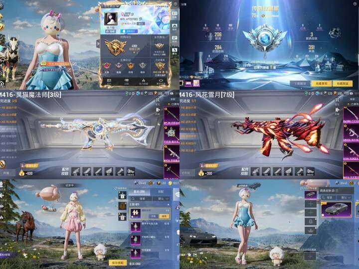 【粉色枪皮等级】:M416-风花雪月(七级),M416-灵猫魔法师(三级),GROZA-镜光银凌(五级),Kar98K-巳巳如意(五级),S12K-海渊国主(七级),DP-28-豹影疾电(五级),撬棍-永恒法杖(七级),平底锅-喜羊羊与灰太狼(三级)