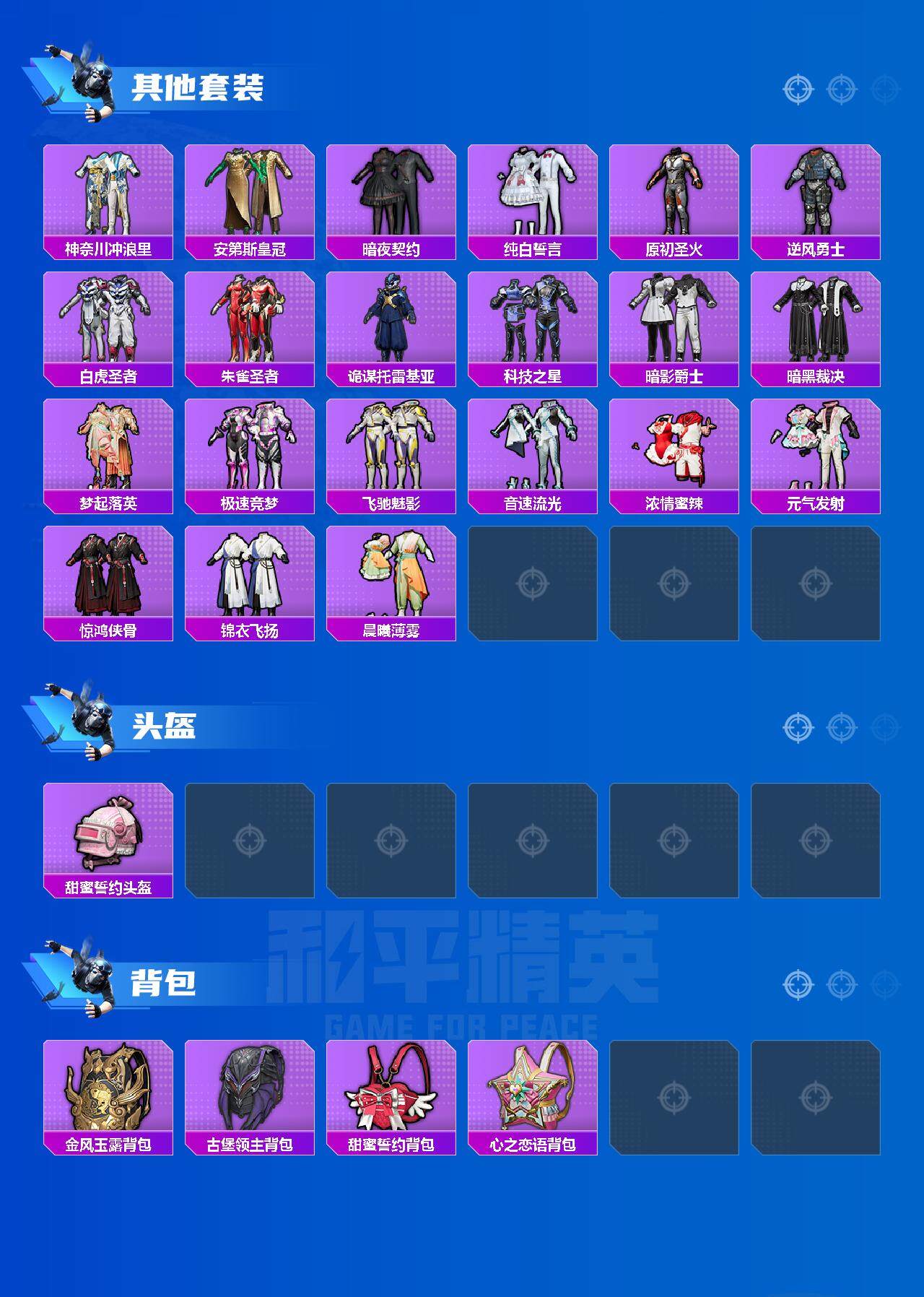 套装-浪漫天命,忍者信条套装,套装-破蛋小黄鸡,套装-机械英豪,套装-安第斯皇冠,套装-暗夜契约,套装-纯白誓言,套装-白虎圣者,套装-朱雀圣者,套装-梦起落英