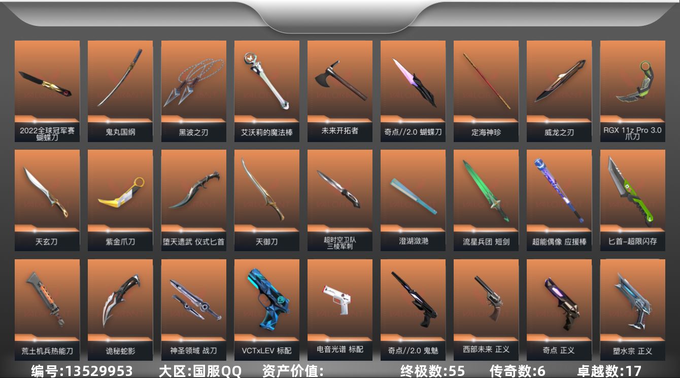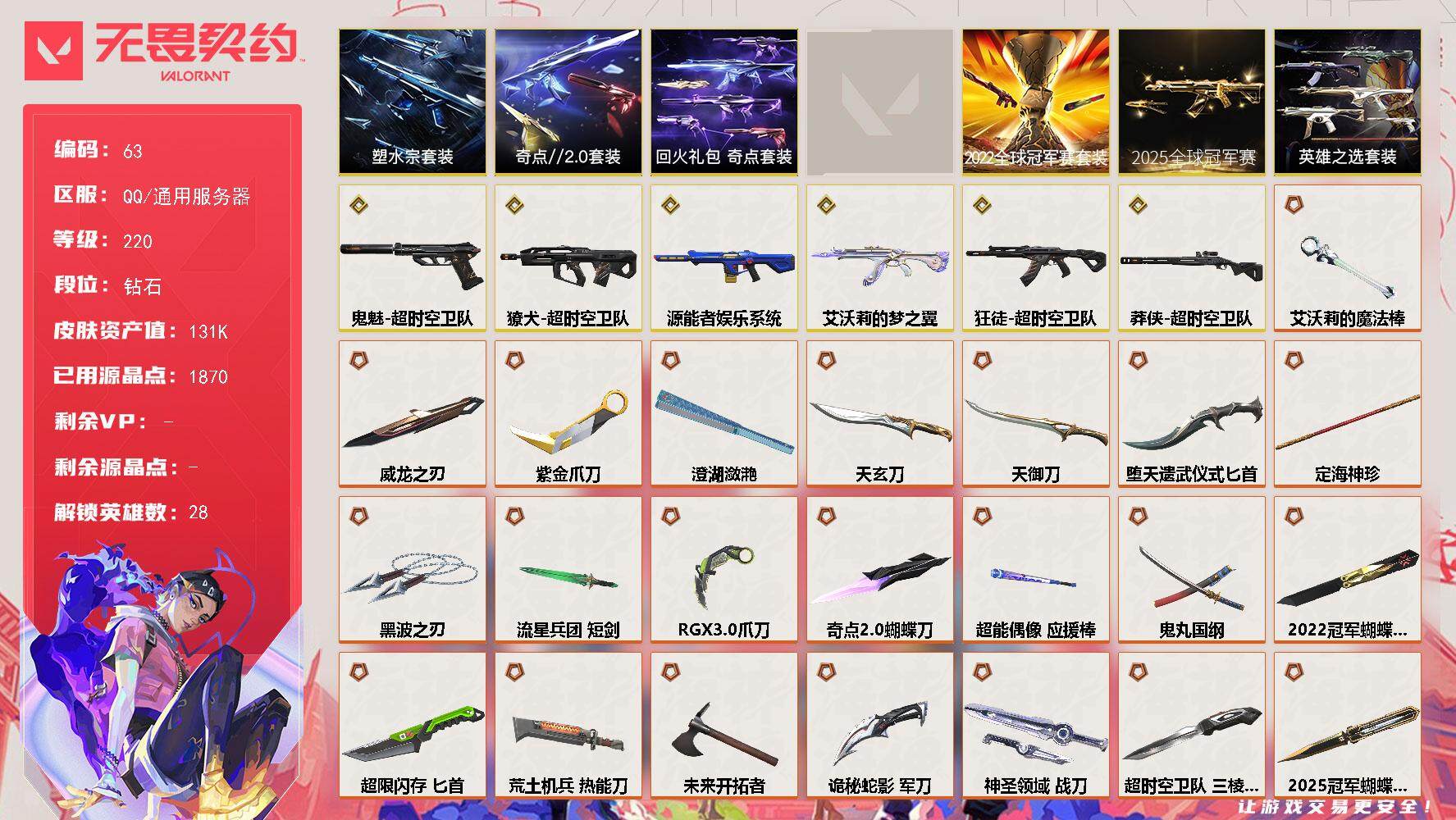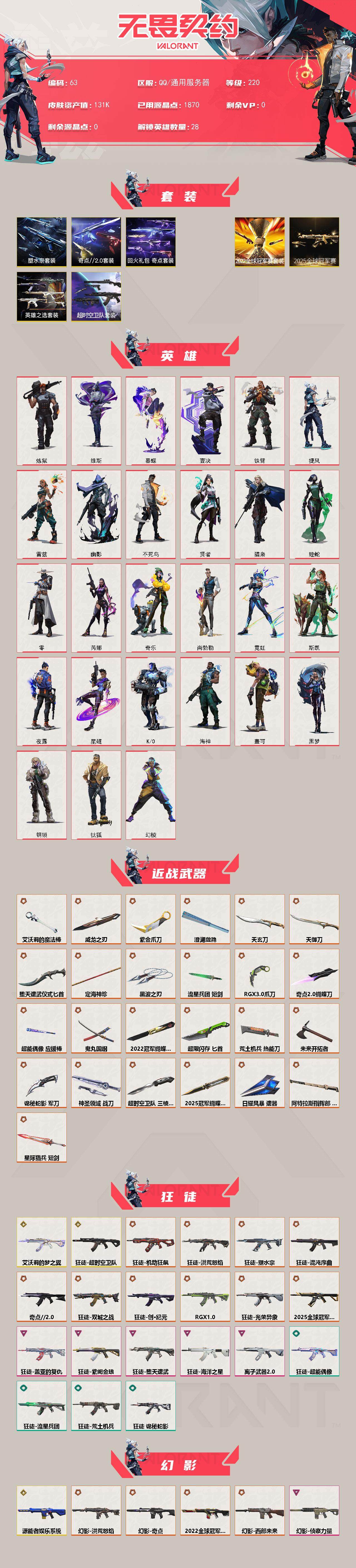 [13529953]【套装】:2025全球冠军赛套装,2022全球冠军赛套装,超时空卫队套装,西部未来套装,塑水宗套装,奇点//2.0套装,回火礼包:奇点套装,英雄之选套装 【英雄】:幻棱,炼狱,维斯,暮蝶,钛狐,壹决,铁臂,捷风,雷兹,幽影,不死鸟,贤者,猎枭,蝰蛇,零,芮娜,奇乐,尚勃勒,霓虹,斯凯,夜露,星礈,K/O,海神,盖可,黑梦,钢锁 【近战 武器】:近战武器-2025全球冠军赛 蝴蝶刀,近战武器-2022全球冠军赛 蝴蝶刀,近战武器-超时空卫队 三棱军刺,近战武器-奇点//2.0 蝴蝶刀,近战武器-紫金爪刀,近战武器-RGX 11z Pro//3.0 爪刀,近战武器-黑波之刃,近战武器-艾沃莉的魔法棒,近战武器-威龙之刃,近战武器-澄湖潋滟,近战武器-鬼丸国纲,近战武器-未来开拓者,近战武器-流星兵团 短剑,近战武器-超能偶像 应援棒,近战武器-超限闪存 匕首,近战武器-定海神珍,近战武器-堕天遗武 仪式匕首,近战武器-荒土机兵 热能刀,近战武器-天玄刀,近战武器-天御刀,近战武器-诡秘蛇影 军刀,近战武器-神圣领域 战刀,近战武器-日耀风暴 遗器,近战武器-阿特拉斯指挥部 甩棍,近战武器-星际猎兵 短剑 【狂徒】:狂徒-艾沃莉的梦之翼,狂徒-超时空卫队,狂徒-2025全球冠军赛,狂徒-洪荒怒焰,狂徒-混沌序曲,狂徒-机动狂飙,狂徒-奇点//2.0,狂徒-双城之战,狂徒-塑水宗,狂徒-创·纪元,狂徒-RGX 11z Pro,狂徒-光荣异象,狂徒-堕天遗武,狂徒-盖亚的复仇,狂徒-海洋之星,狂徒-紫阙金琅,狂徒-离子武器//2.0,狂徒-超能偶像,狂徒-荒土机兵,狂徒-流星兵团,狂徒-诡秘蛇影 【幻影】:幻影-源能者娱乐系统,幻影-2022全球冠军赛,幻影-洪荒怒焰,幻影-奇点,幻影-西部未来,幻影-天界神兵//2.0,幻影-侦察力量,幻影-异鳞魔蛇,幻影-超限闪存,幻影-神圣领域,幻影-聚合之力,幻影-纳米打击,幻影-末日之翼,幻影-西部未来 【戍卫】:戍卫-破败军械,戍卫-掠影,戍卫-天界神兵,戍卫-超能偶像,戍卫-浮光跃金,戍卫-逆冲蛮牛,戍卫-战术熊与伙伴们,戍卫-月球哨兵,戍卫-折光棱晶 【獠犬】:獠犬-超时空卫队,獠犬-黯夜怪谈,獠犬-神圣领域,獠犬-采蜜小蜂队,獠犬-模拟赫兹,獠犬-逆冲蛮牛 【冥驹】:冥驹-千灵华绽,冥驹-堕天遗武,冥驹-荒土机兵,冥驹-模