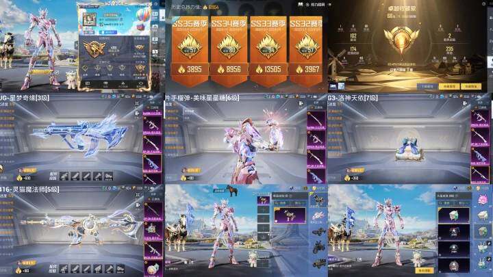 【粉色枪皮等级】:M416-灵猫魔法师(五级),GROZA-镜光银凌(五级),AUG-星梦奇缘(三级),AUG-暖羊咩咩(五级),Kar98K-巳巳如意(五级),DP-28-千金淑猫(七级),DP-28-豹影疾电(五级),MG3-洛神天依(七级),MG-36-幻彩电音(三级),平底锅-喜羊羊与灰太狼(一级),破片手榴弹-美味星星糖(六级)