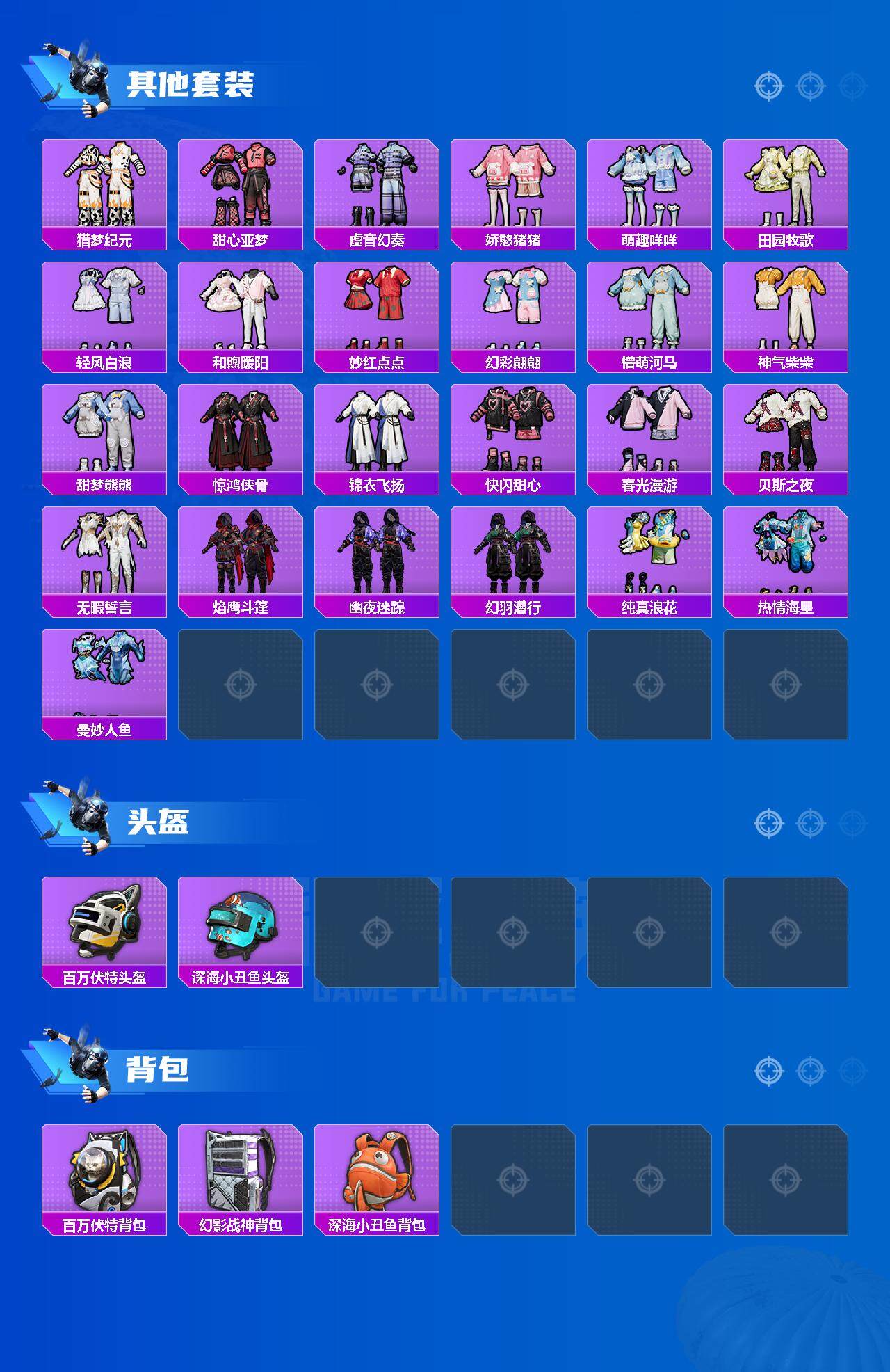 - [12583745]安卓 手Q-19粉装-4特效枪-2载具-4粉色飞行器-95063热力值-7王牌印记-242套装-262枪皮 【热门品类】:粉装-梦幻火箭,粉装-彩装战姬,套装-浪漫天命,套装-派对舞王,套装-奇异狩猎者,套装-龟仙人,套装-暗影哥特,套装-粉红小猪,角色-8号机,角色-Mark.06 【粉色载具】:兰博基尼Estoque(银翼灰),兰博基尼URUS(明艳黄) 【粉色套装】:粉装-数码大师,粉装-甜心巧克力,粉装-宝贝奶油派,粉装-蝶舞迷情,粉装-梦幻火箭,粉装-草莓生巧,粉装-炙焰红王,粉装-黄伞悠悠,粉装-黑伞漫漫,粉装-幻情紫藤,粉装-青葱仙萝,粉装-精灵娃娃,粉装-酣梦娃娃,粉装-天之羽翼,粉装-焦糖拿铁,角色-复仇流浪者,粉装-莲影清波,粉装-彩装战姬,粉装-星穹咏叹调 【粉色枪皮等级】:M416-风花雪月(七级),GROZA-焦糖拿铁(七级),AUG-暖羊咩咩(五级),Kar98K-巳巳如意(五级) 【粉色枪皮】:M416-风花雪月,GROZA-焦糖拿铁,AUG-暖羊咩咩,Kar98K-巳巳如意 【粉色飞行器】:梦幻火箭飞行器,天之羽翼飞行器,焦糖拿铁飞行器,龙翔九天飞行器 【粉色降落伞】:极限特训降落伞,百万伏特降落伞,银河战甲降落伞,甜心宝贝降落伞,梦幻火箭降落伞,锦绣火鲤降落伞,香水柠檬降落伞,暗夜玫瑰降落伞,红伞翩翩降落伞,蓝莓炮弹降落伞,绚金瑰梦降落伞,甜心娃娃降落伞,暗星紫秘降落伞,天之羽翼降落伞,焦糖拿铁降落伞,碧影闪光降落伞,青春物语降落伞,垂柳戏鸭降落伞,彩虹甜喵降落伞,闲梦青缨降落伞,莲影清波降落伞,彩装战姬降落伞,墨龙九天降落伞,创世·救赎降落伞,临安公主降落伞,月影灵韵降落伞 【稀有套装】:套装-龟仙人,套装-巳巳如意,套装-萝兰蝴蝶,套装-糖糖葫芦,套装-青团波波,角色-许七安,套装-燕燕于飞,套装-鱼渊荷华,套装-紫幽梦,套装-蓝冰羽,套装-星渊小夜曲 【稀有枪皮】:AKM-四圣焕新,AKM-夜灯,AKM-彩虹符号,AKM-灼热熔岩,AKM-萌趣颜团子,AKM-虎虎生威,AKM-霓虹街区,M16A4-幻世战舞者,M16A4-甜心亚梦,M16A4-红色方程式,SCAR-L-夜灯,SCAR-L-暗夜玫瑰,SCAR-L-炫彩节奏,SCAR-L-玉兔迎春,SCAR-L-黄金龙骨,SCAR-L-龙宫之主,M416-夜灯,M416-暗星紫