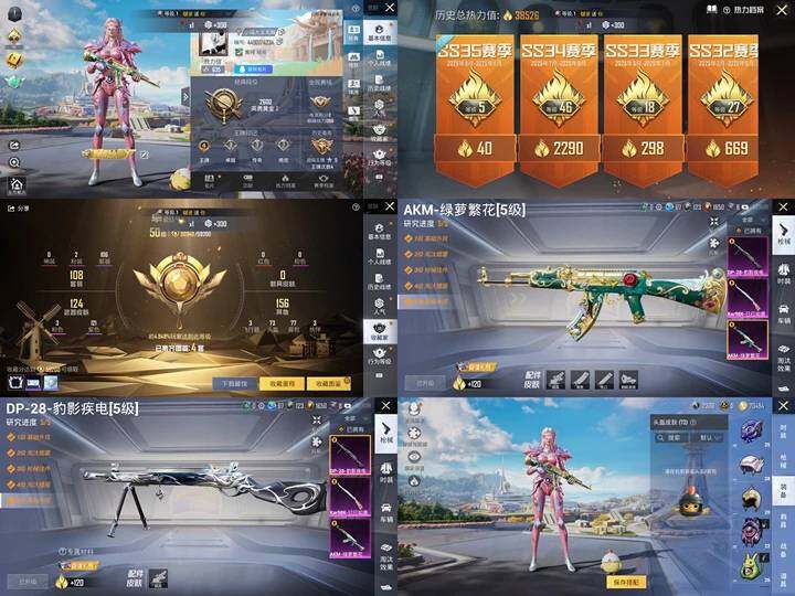 【粉色枪皮等级】:AKM-绿萝繁花(五级),Kar98K-巳巳如意(五级),DP-28-豹影疾电(五级)