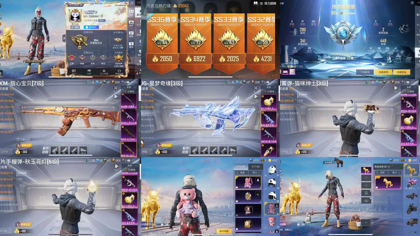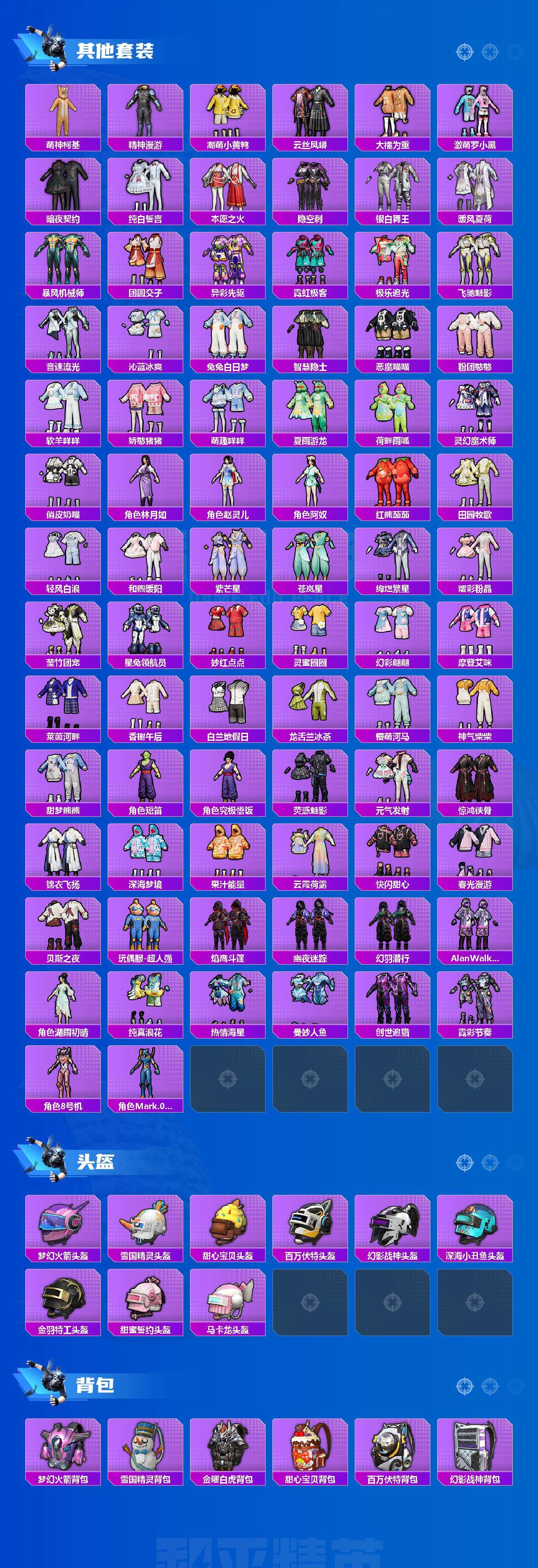 - [8898000]实名: 可修改 时装数: 404 枪械数: 144 战备数: 96 热门装扮: 苍蓝魅影,烈焰拳霸,潮萌小黄鸭,千金淑猫 稀有枪皮: AKM梦之光华,VSS烈焰拳霸,SVD-月影灵韵,Kar98K-巳巳如意 亮点: 3粉装-4特效-0载具-热力值46748-总套装404-总枪皮144-王牌印记7-历史最高超级王牌12星-粉套-苍蓝魅影,粉套-烈焰拳霸,角色-千金淑猫-AKM-梦之光华(7级),Kar98K-巳巳如意(5级),SVD-月影灵韵(4级),VSS-烈焰拳霸(7级)--套装-猎鹰,套装-青年教官,套装-红色运动,套装-黄色运动,套装-蓝色运动,套装-黑色伏地魔,套装-竞技名士,套装-湖蓝色名流,套装-黄色名流,套装-长空猛禽,套装-海岛探路者,套装-冷焰舞者,套装-灼焰舞者,套装-灰色格斗者,套装-滨海假日,套装-冰冻风暴,套装-幻影武者,套装-千禧之恋,套装-怒火燎原,套装-魅力单车,套装-竞技达人朋克,套装-夜莺强袭者,套装-森林游猎者,套装-极地朋克,套装-幻世战舞者,套装-甜蜜熊情侣,套装-缤纷果语,套装-龙魂突击队,套装-风暴特警,套装-冰川特警,套装-元素星魂,套装-格斗先锋,套装-海上生明月,套装-粉红小猪,套装-破蛋小黄鸡,套装-精神漫游,套装-夏日音浪,套装-青春冒险家,套装-潮流游乐家,套装-萌趣颜团子,套装-特种颜团子,套装-战术大师,套装-SS18特训,套装-治愈之星,套装-科技之星,套装-闪银刀客,套装-SS14特训,套装-吉莉礼服,套装-快乐星愿,套装-鹤发童颜,套装-SS15特训,套装-SS16特训,套装-暴风机械师,套装-时空追击者,套装-星辰守护者,套装-暗夜傀儡,套装-SS17特训,套装-醒狮腾龙,套装-瑞龙福将,套装-团圆交子,套装-福星高照,套装-虎虎生威吉莉,套装-SS19特训,套装-沁蓝冰爽,套装-浓情蜜辣,套装-飞驰魅影,套装-音速流光,套装-炫蓝之夏,套装-SS20特训,套装-猎梦纪元,套装-甜心亚梦,套装-虚音幻奏,套装-SS21特训,套装-萌趣咩咩,套装-SS22特训,套装-SS23特训,套装-青玉碎影,套装-
