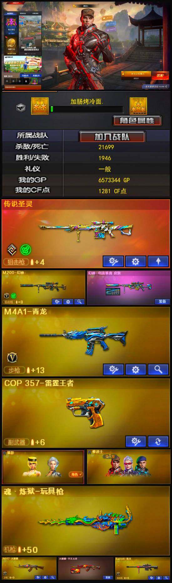 【热门武器】:传说圣灵,M4A1-青龙,M200-幻神,COP 357-雷霆王者,沙鹰-修罗