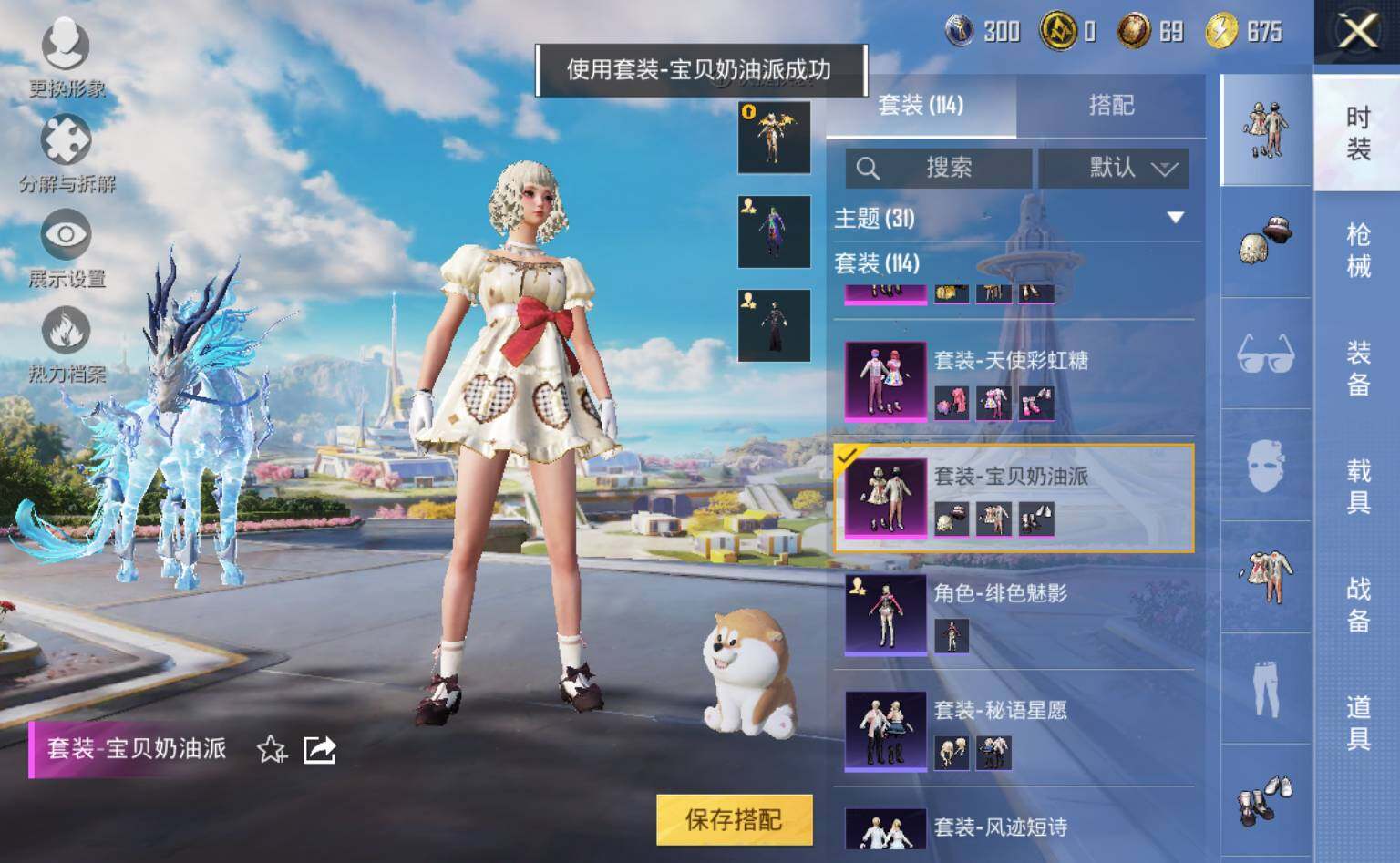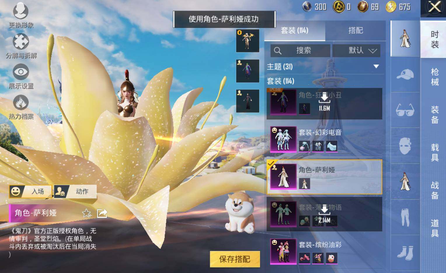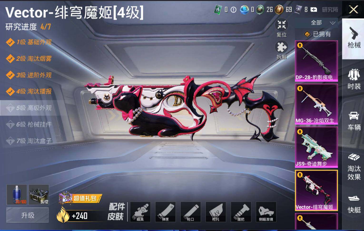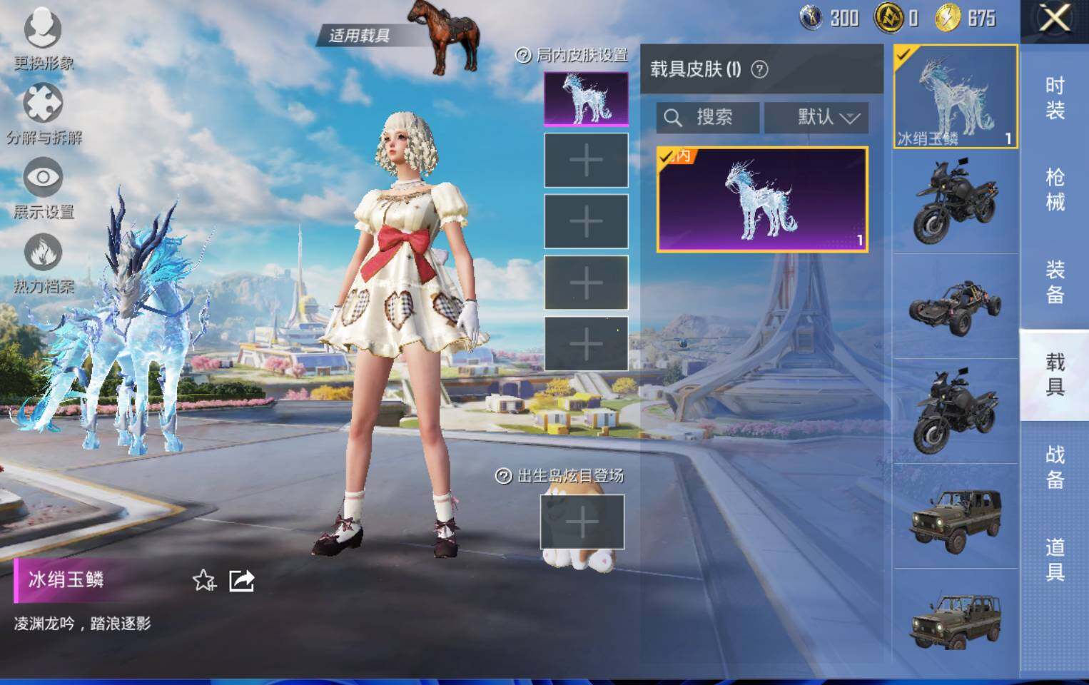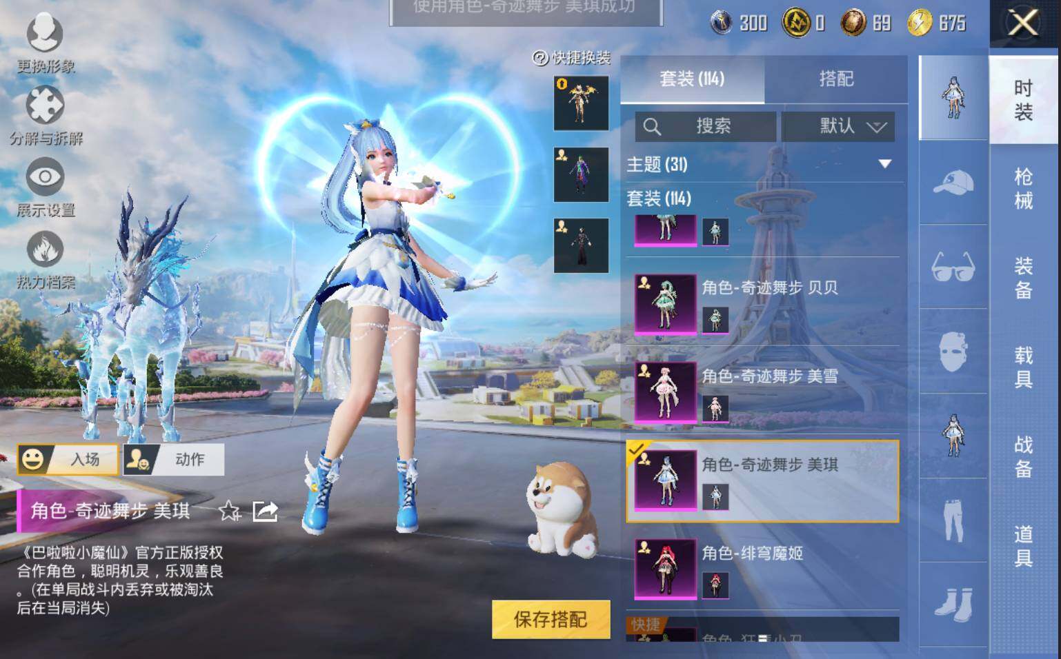 AKM-炫紫旋律,M416-风花雪月,GROZA-镜光银凌,AUG-暖羊咩咩,M762-青锋波束,Kar98K-巳巳如意,Kar98K-圣域龙灵