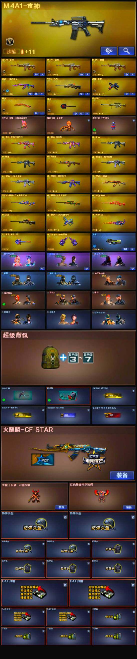 【英雄级武器】:M4A1-雷神,黑武士-锦绣游龙,M4A1-猎神*3,AWM-天龙,沙鹰-修罗,屠龙,擎天