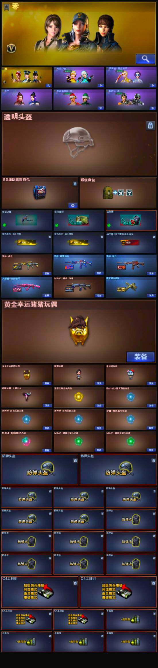 【道具】:BS战队炫彩背包,炫彩背包,超级背包,生化弹匣,夺命之镰,防化服,金色流光-枪王排位*2,枪王排位28赛季金色流光,防弹头盔*7,防弹衣*7,C4工具钳*4,手雷包*4