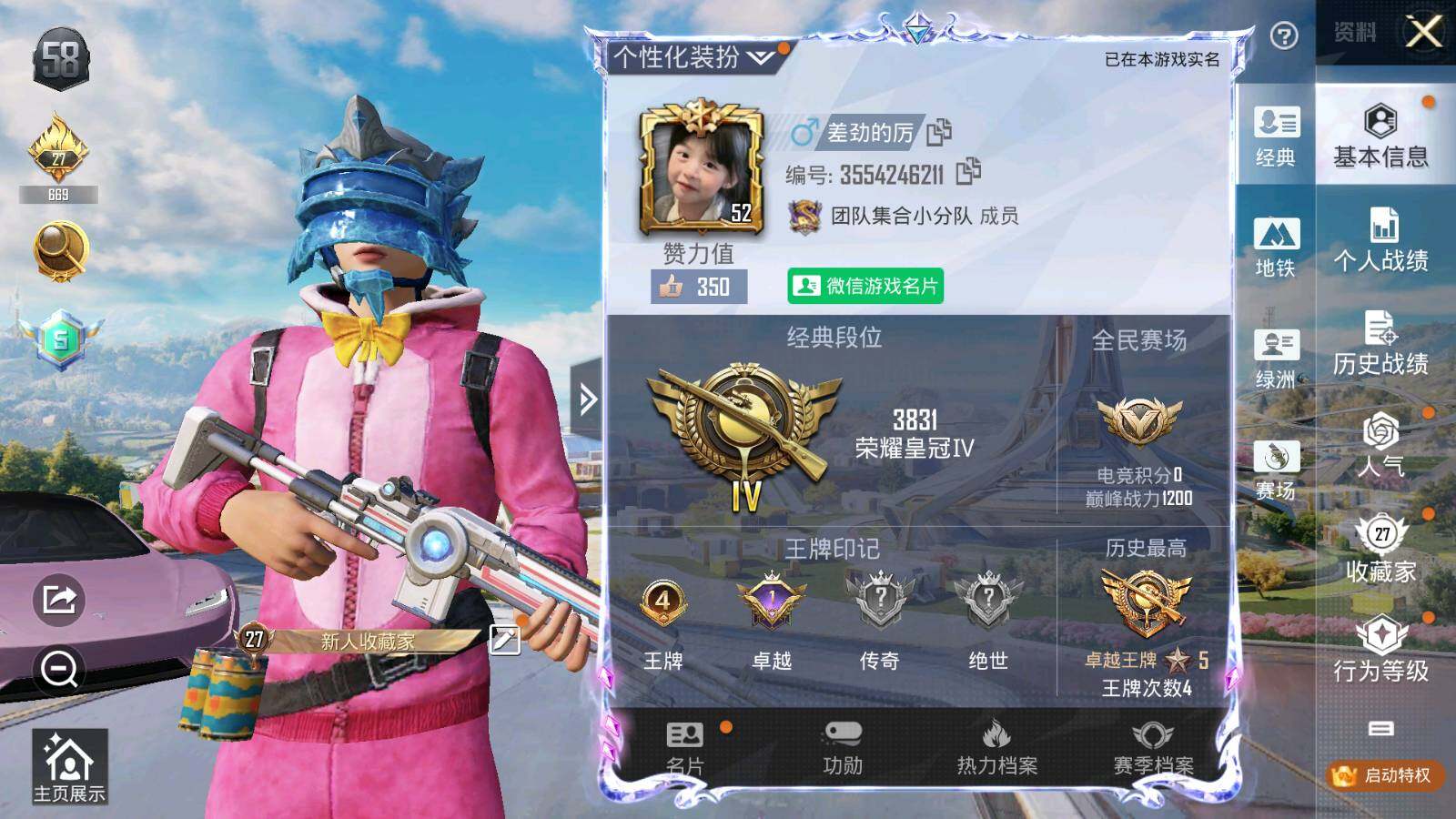 [13343275]安卓 微信-2粉装-1特效枪-1载具-0粉色飞行器-18544热力值-4王牌印记-53套装-54枪皮