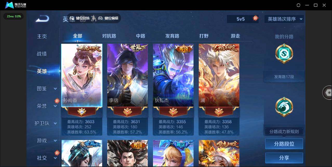 - PX_2095783-实名: 可修改 贵族等级: V7 英雄数: 100 皮肤数: 88 传说皮: 猫影幻舞,仲夏夜之梦,游龙清影,无双飞将,音你闪耀 限定皮: 遇见飞天,瑞麟志,朱雀志,五谷丰年,神器·万象笔,鸣野蒿