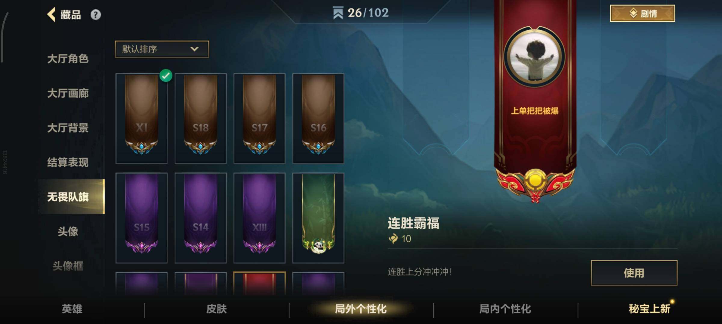 - [11632463]V7 1典藏 10传说 123英雄 216皮肤 可修改实名 优质装备:神鉴启示录,黄金射手座,云鹰飞将(小将军),久胜战神,一念神魔,零号·赤焰,时之恋人-刘备(电焊工),无双飞将 珍宝阁皮:胡桃夹子,女武神 限定皮:愿照·九州拓(澜年限),愿照·岁时盈(虞姬年限),愿照·众生和(妲己年限),神威(电光马子),高山流水,五谷丰年,梁祝,烈魂,逐梦之音,李小龙,逐梦之影,孙行者,山海·玄木吟(马可年限) 史诗皮:鸭鸭历险记-刘禅,化蝶舞,龙之律动,雪豹·霜爪,石田雨龙,茶境仙,百相守梦-百里守约,百相守梦-黄忠,紫霞仙子,白龙吟,黄金分割率,特工魅影,千年之狐,电玩·爆裂旋风,蒙恬荣光圣徽,偶像歌手,龙骑士(小龙虾),暗夜猫娘,晚萤,青蛇,末日机甲-吕布,猫狗日记-孙策,时之恋人-孙尚香,节奏热浪,修罗,女仆咖啡,水果甜心,星夜王子,心灵骇客,时之奇旅-安琪拉,德古拉伯爵,暗隐猎兽者,鬼剑武藏,心灵战警,乐园奇幻夜,地狱岩魂,缤纷独角兽,曙光守护者,热力回旋,金属风暴,圣诞狂欢,圣诞恋歌,鹰眼统帅,魅力维加斯,黎明之约,无心