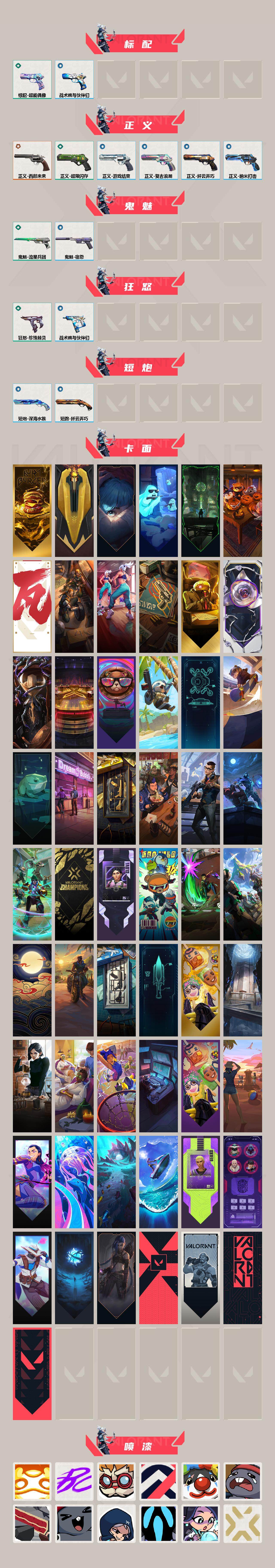 【卡面】:终章:激斗汉堡 卡面,进入射程 卡面,《双城之战》拥抱 卡面,精灵大战 卡面,欢迎来到底城 卡面,南瓜盛典 卡面,VCT CN首冠 卡面,修车达人 卡面,热舞环节 卡面,正义的化身 卡面,终章:生意人麦宝 卡面,铁之华 卡面,时间到 卡面,最高舞台 卡面,音熊登场 卡面,树懒大作战 卡面,声感陷阱设计图 卡面,Clutch 卡面,霓帧牛蛙 卡面,梦幻奶茶 卡面,终章:打造专属狂徒 卡面,趁热吃 卡面,西装暴徒 卡面,失控边缘 卡面,哨卫者之领域 卡面,艺无止境//全球冠军赛 卡面,暮蝶工牌 卡面,战术熊与伙伴们 卡面,源能反应 卡面,流星兵团 卡面,纤云弄巧 卡面,暂别喧嚣 卡面,打造专属狂徒 卡面,零点嗅探设计图 卡面,终章:瓦娃脸雪糕 卡面,表象之下 卡面,虹吸式咖啡壶 卡面,源能者美容 卡面,脚踝终结者 卡面 ,夜班 卡面,瓦娃脸雪糕 卡面 ,沙雕爆能器 卡面,无畏契约GO!第一卷:芮娜 卡面,深海水族 卡面,珍珠棘贝 卡面,复