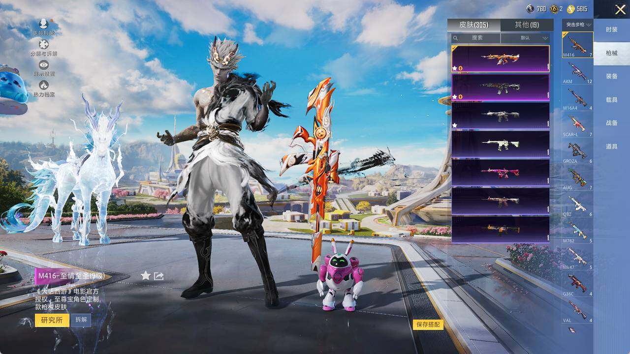AKM-星际浪客,SCAR-L-桃夭倾城,M416-至情至圣,M416-墨龙九天,Kar98K-创世·救赎,Kar98K-巳巳如意,平底锅-林间仙鹿