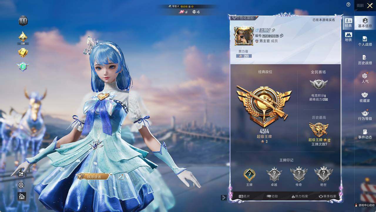 - PX_2095798-实名: 不可修改 贵族等级: V7 英雄数: 124 皮肤数: 244 无双皮: 小乔时之魔女 珍品传说: 酷洛米之心 星传说: 金色仲夏夜 传说皮: 黄金狮子座,猫影幻舞,一念神魔,仲夏夜之梦,山海·琳琅生,貂蝉曦玄引,星之鸣奏 限定皮: 李小龙,游园惊梦,魔法小厨娘,异界灵契,白晶晶,大圣娶亲,高山流水,孙行者,猪悟能,傲雪梅枪,寅虎·心曲,山海·碧波行,鸣野蒿,陌上桑,