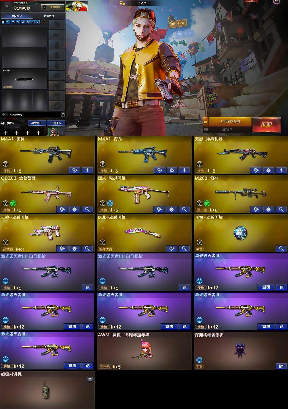 - [13036266]【113】7V/100级/元帅/1王者/1炫金/1英雄/金色蔷薇-古蛇迷踪/修罗-古蛇迷踪/Kar98k-星神/炫金无影/星神音效卡/火麒麟-心动糖果/蜀雪/女主播/暗夜审判/迷你深渊冰龙/灵狐娃娃手雷/生化手雷-机甲核心/超级对讲机/神圣爆裂者-末日/M4A1-雷神/AK47-火麒麟/AK47-黑武士-锦绣游龙/AK-47-猩红传说