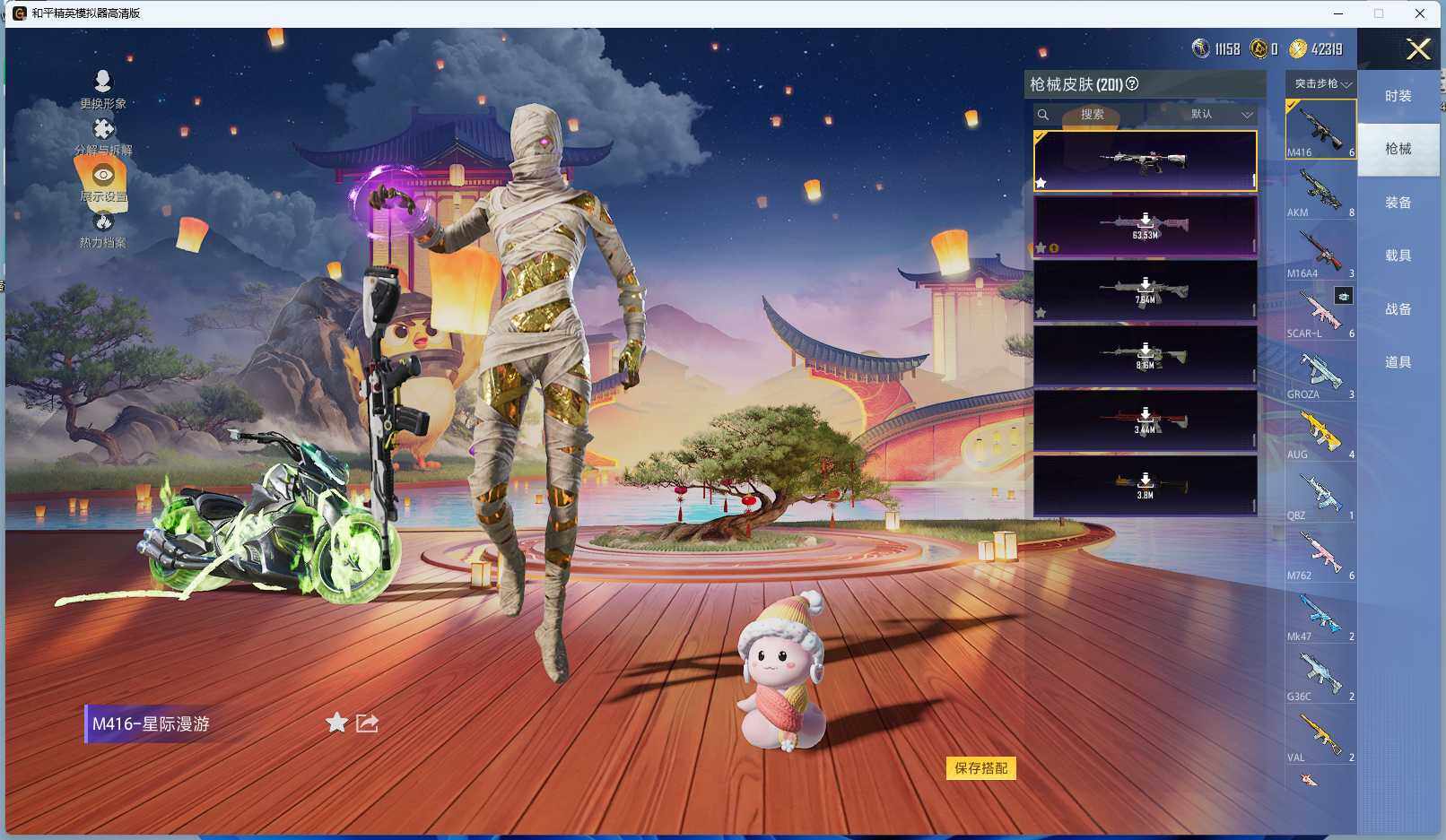 AKM-幽焰骑士,M416-电玩时刻,P90-沙丘之主,Kar98K-巳巳如意,莫辛纳甘-未来领航者