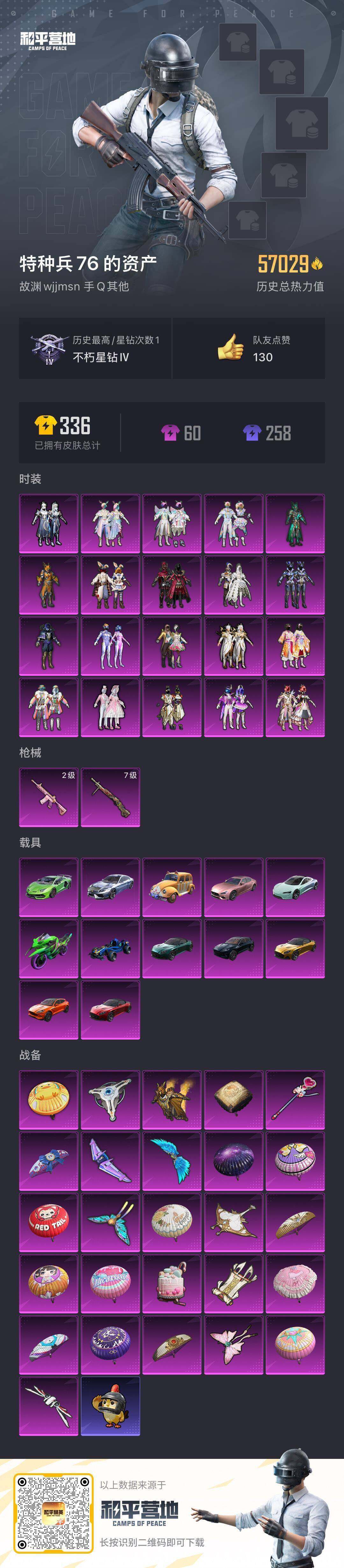 - PX_2102172- 苹果手Q-11王牌印记-4粉装-4特效枪-1载具-83357热力值-197套装-233枪皮-0卓越印记-0传奇印记 【4粉装】,星穹咏叹调,碧影闪光,粉色回忆,齐天大圣 【4特效枪】AKM-星际浪客-7级 M416-风花雪月-7级 Kar98K-巳巳如意-5级 Mini14-荧光虫舞-7级 【10稀有紫装】,萌熊伴侣背包(3级),暗影哥特,深海小丑鱼,沙漠守护者,雪山精英