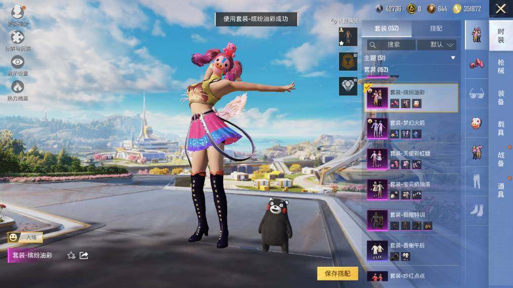 【热门品类】:粉装-梦幻火箭,粉装-缤纷油彩,套装-浪漫天命,套装-都市猎人,套装-派对舞王,套装-小丑鱼,套装-奇异狩猎者,角色-军刀雅典娜,套装-胖达圆圆,套装-潮萌小黄鸭,套装-暗影哥特,套装-浪漫波比
