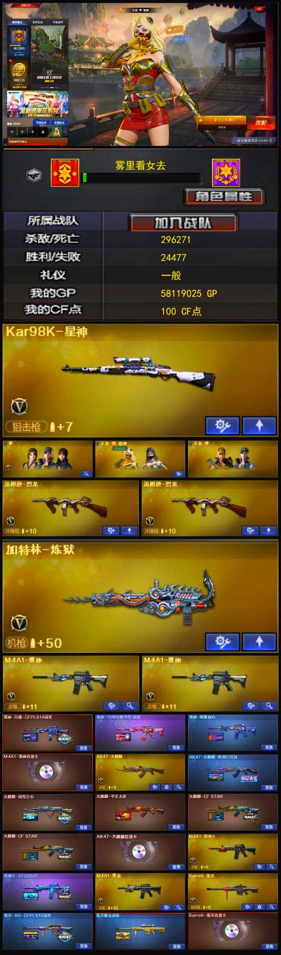 【皮肤】:雷神-能量核心,雷神-15周年嘉年华 皮肤,火麒麟-雷神,火麒麟-冠军之心,AK47-火麒麟-传奇EVEN,火麒麟-平天大圣,毁灭耀金皮肤,M4A1-千变-孔明皮肤,黑骑士-CFS2021,天启-高能霹雳 皮肤,战神-粉色甜心皮肤*3,战神-紫绶金章皮肤*3,战神-流金岁月皮肤*3,AWM-天龙-传奇70KG,AWM-天龙-传奇白鲨,修罗-能量核心,修罗-冠军之魂
