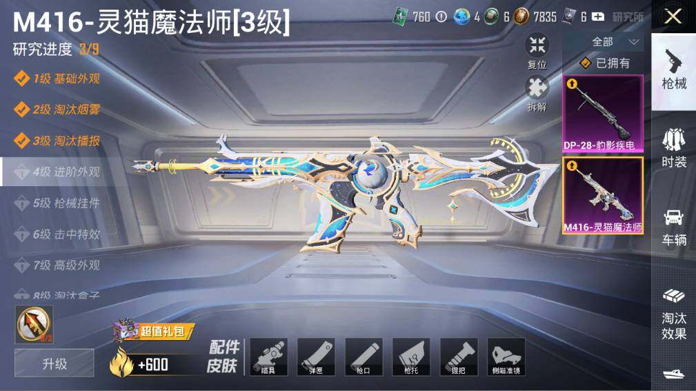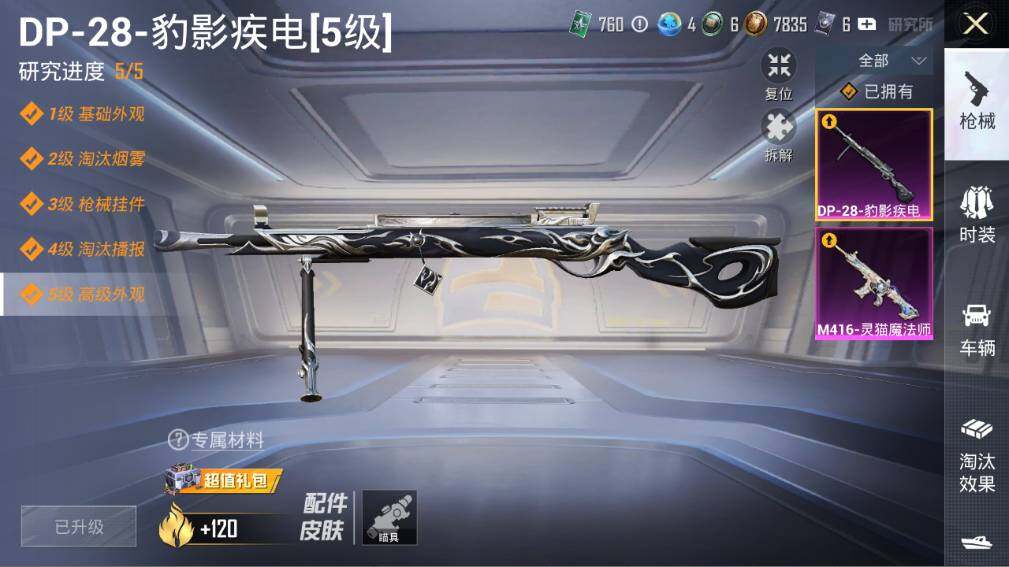 【粉色枪皮等级】:M416-灵猫魔法师(三级),DP-28-豹影疾电(五级)