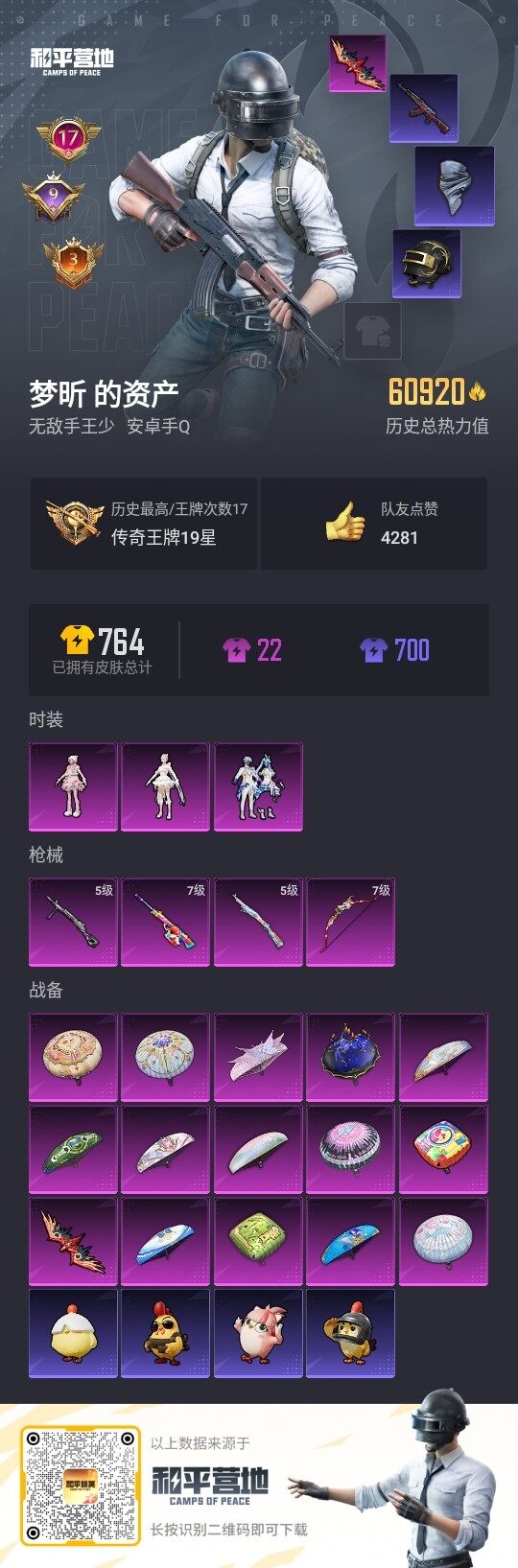 - [11526391]3粉装 5特效枪 12印记 可二次 可修改实名 优质装备:M16A4垂柳戏鸭,SCAR-L-锦绣绵绵,M416电玩时刻,Kar98K-巳巳如意 热门装扮:朗月武圣,未来歌姬,创世·救赎,鹰眼刺客,梦魇先生 稀有枪皮:DP-28-豹影疾电 五级特效枪:五级Kar98K-巳巳如意,五级DP-28-豹影疾电,五级M416-电玩时刻,五级SCAR-L-锦绣绵绵,五级M16A4-垂柳戏鸭 紫色装扮:田园牧歌,轻风白浪,SS22特训,SS23特训,幻彩翩翩,妙红点点,龙舌兰冰茶,白兰地假日,娇憨猪猪,萌趣咩咩,SS21特训,浪漫假日,SS31特训套装,云霄猎人,人气偶像,军械专家,冰川特警,冷焰舞者,旭日情侣,SS33特训套装,顶瓜瓜,SS20特训,猎梦纪元,SS19特训,甜心亚梦,虚音幻奏,SS18特训,都市魅力,酒红色名流,野性战心,长空猛禽,雨林探路者,雪山征服者,霓虹街区,霸义无双,青年教官,青春校园,风暴特警,缤纷果语,苍穹猎鹰,荣耀,蓝彩潮人,蓝色运动,血色贵族,街头潮人,超能勇士,绛羽幽主,飞行日记,龙腾端午,魅力单车,鹤鸣,麻辣教官,黄色伏地魔,黄色名流,黄色运动,黑色伏地魔,龙的传人,龟仙人,冰河战士,蝶变,香桃花海,沙漠毒蛇,极地朋克,极速红龙,柠萌假日,橘黑制服,沙漠兵团,活力之心,派对绅士,海岛探路者,涂山之恋,深蓝色名流,清新柠檬,幻影武者,坚韧舞者,完美偶像,帅气教官,幻世战舞者,战地督导,探宝勇士,湖蓝色名流,绮丽涂鸦,甜蜜菠萝,白熊同盟,白色伏地魔,破晓战魂,破蛋小黄鸡,甜蜜告白,空岛之星,空投萌叽,竞技达人朋克,红色运动,王牌教练,牛气冲天,灰色格斗者,灼焰舞者,炫蓝之夏,热血骑手,燃烧卡路里,牛气满满,猛禽,特战英豪,特殊使命,特训学院,猎鹰,SS29特训,拉斐尔,星途旅人,创世·幻影,纯真浪花,热情海星,SS28特训,卖崽青蛙,创世·追猎,冰公主,红潮炫舞,鱼渊荷华,玉兔迎春,燕燕于飞,竞技名士,许七安,情公主,惊鸿侠骨,甜梦熊熊,神气柴柴,懵萌河马,SS24特训(SS24特训套装),SS25特训,绝对偶像,锦衣飞扬,粉红小猪,焰鹰斗篷,幻羽潜行,SS27特训,SS26特训,春光漫游,快闪甜心,贝斯之夜,智谋强哥,精神漫游,格斗专家,核芯基因,大橘大利,耀粉歌者,SS32特训服(SS32特训套装),青玉碎影,绯格组合,萌黄之夏,白糯汤圆,恋