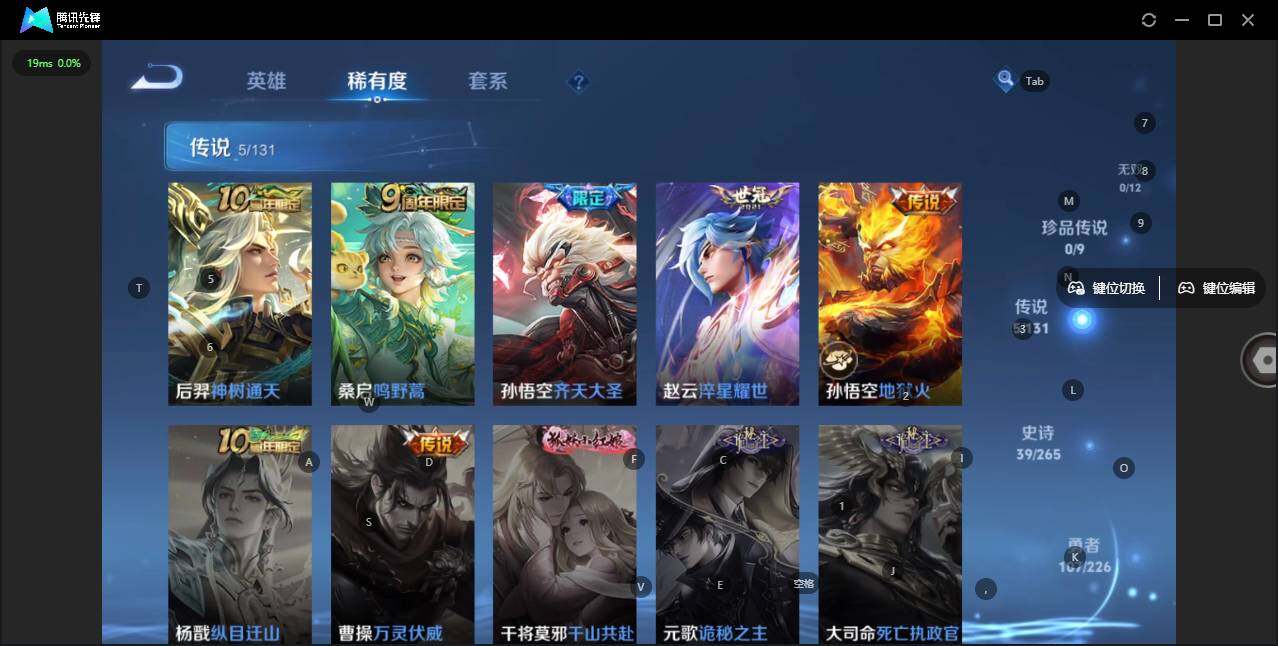 【传说皮肤】:后羿神树通天,桑启鸣野蒿,孙悟空齐天大圣,赵云淬星耀世,孙悟空地狱火