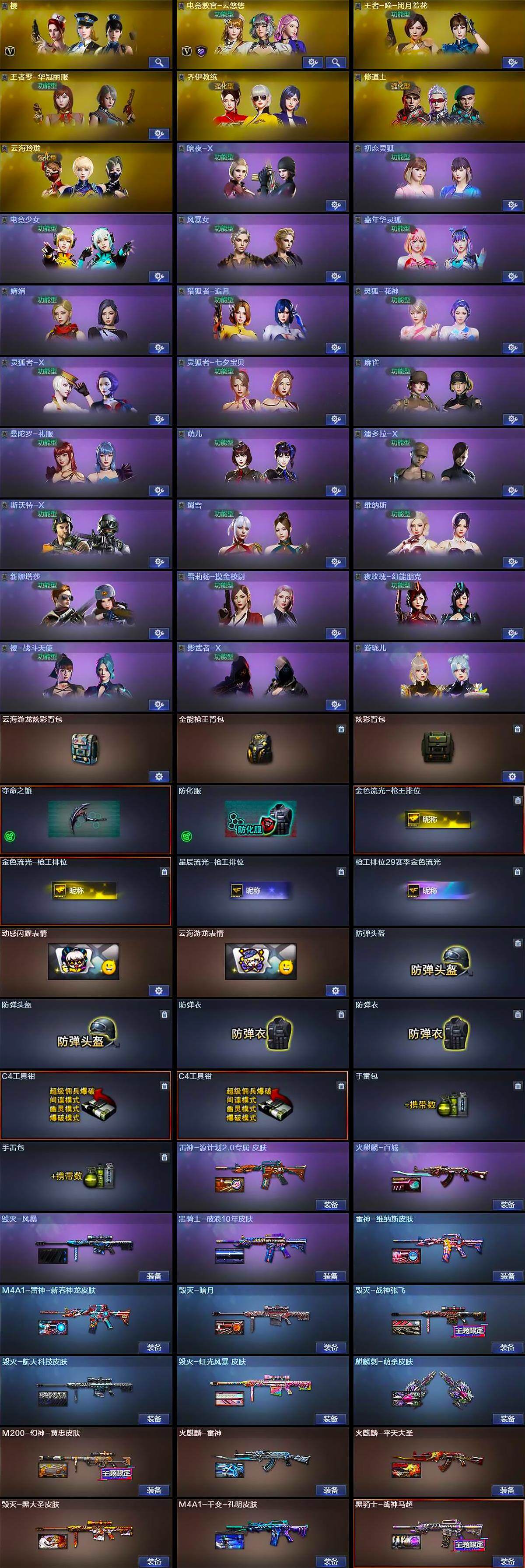 【道具】:云海游龙炫彩背包,全能枪王背包,炫彩背包,哔哩哔哩名片,夺命之镰,防化服,金色流光-枪王排位*2,星辰流光-枪王排位,枪王排位29赛季金色流光,动感闪耀表情,云海游龙表情,防弹头盔*2,防弹衣*2,C4工具钳*2,手雷包*2
