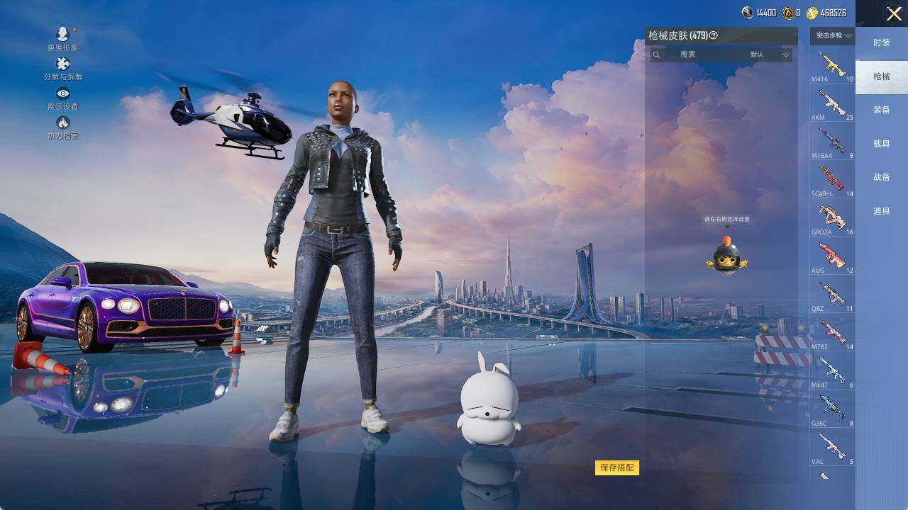 AKM-炫紫旋律,AKM-白勺歌姬,SCAR-L-童趣迷兔,M416-五爪金龙,M416-心之恋语,M416-暖熊萌萌,GROZA-香水柠檬,GROZA-焦糖拿铁,AUG-妙趣可丽,M762-甜蜜誓约,UZI-绮梦青鸾,UMP45-雪国精灵,Vector-飒粉甜心,汤姆逊-怪笑疯兔,P90-粉樱探戈,Kar98K-巳巳如意,AWM-花间之火,M417-第五大道,M200-梦海之灵,MG3-洛神天依,烟雾弹-猫咪绅士,破片手榴弹-粉粉猫爪