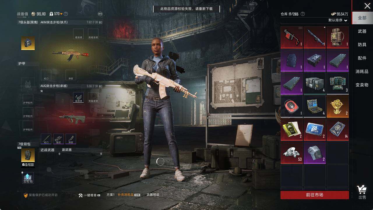 - [11632533]总资产:5.4M 4干员外观 22传说枪械 哈夫币:442.079K 可二次 可修改实名 优质装备:K416突击步枪-命运(典藏) 烽火地带段位:三角洲巅峰 全面战场段位:列兵 传说武器皮肤:腾龙突击步枪-蛟龙特战队,AS Val突击步枪-蛇年祥瑞,SR-25射手步枪-水墨云图,SCAR-H战斗步枪-水墨云图,SCAR-H战斗步枪-铁艺苍穹,AK-12突击步枪-夜鹰,G18-飞虎,SMG45冲锋枪-骑士,复合弓-黑-天际线,勇士冲锋枪-能天使-午夜邮差,725双管霰弹枪-送葬人-无题密令,K437突击步枪-北极星,腾龙突击步枪-黎明警戒,MP5冲锋枪-黑海,AUG突击步枪-游乐场,M870霰弹枪-游乐场,M250通用机枪-游乐场,QJB201轻机枪-黑海,M7战斗步枪-维京,M7战斗步枪-怜悯,M4A1突击步枪-蚀金玫瑰 史诗武器皮肤:M700狙击步枪-蝮蛇,SR-25射手步枪-尖端治疗,PKM通用机枪-荒野求生,AS Val突击步枪-尖端治疗,M700狙击步枪-守夜人,SG552突击步枪-尖端治疗,Ash-12战斗步枪-守夜人,MP5冲锋枪-深海恐惧,SR-3M紧凑突击步枪-荒野求生,勇士冲锋枪-深海恐惧,SG552突击步枪-深海恐惧,AKM突击步枪-林中猎手,M16A4突击步枪-竞赛选手,PKM通用机枪-守夜人,SVD狙击步枪-荒野求生,M14射手步枪-禁卫,M1014霰弹枪-林中猎手,SV-98狙击步枪-林中猎手,PSG-1射手步枪-无垢,AS Val突击步枪-典狱官,M250通用机枪-囚徒,SCAR-H战斗步枪-囚徒,腾龙突击步枪-无垢,MP7冲锋枪-无垢,QBZ95-1突击步枪-曙光,沙漠之鹰-曙光,SVD狙击步枪-阿萨拉工艺,PKM通用机枪-英雄,M14射手步枪-黑鹰坠落,M700狙击步枪-竞技风 干员外观:红狼-蚀金玫瑰,骇爪-水墨云图,威龙-飞虎,蜂医-送葬人·无题密令(S5)