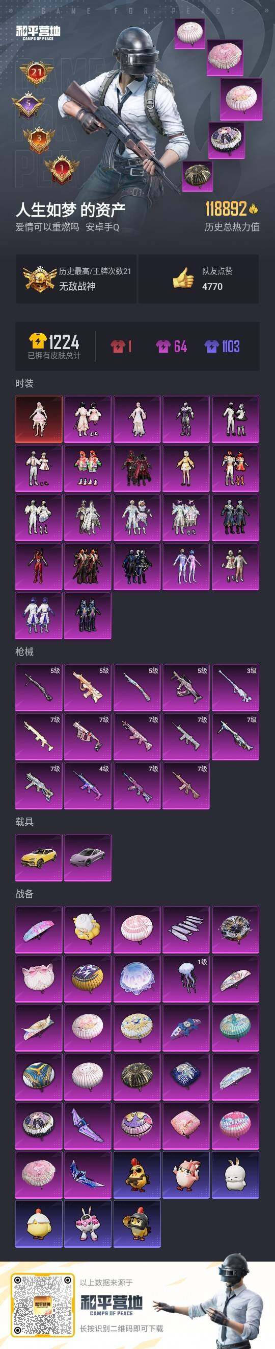 - PX_2098957-6【保证金商家·终身售后·找回包赔】- 自营编号【有二次】【因赛季更新游戏段付以上号为准!】 安卓Q- 5王牌印记 历史卓越王牌11星 82套装 111枪皮 【1稀有】 浪漫天命 【6粉装】 萨利娅 千金淑猫 金丰海韵 星穹咏叹调 放客神游 星空之魅 【6特效枪】 M416-心之恋语 (7级) P90-沙丘之主 (3级) AKM-炫紫旋律 (4级) Kar98K-巳巳如意