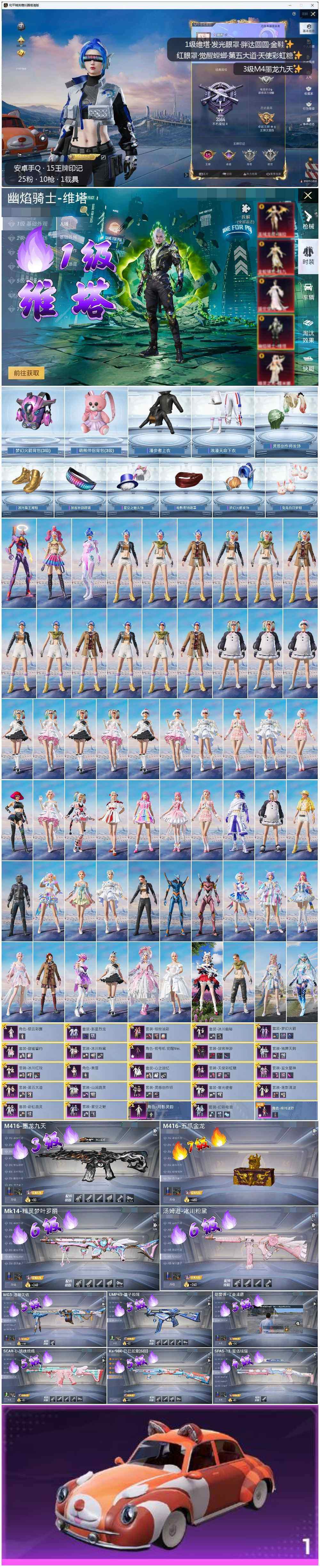 - PX_2083669-【和平精英连体王者荣耀,王者258皮肤,1典藏1珍品11传说,小国标高渐离,金标元歌,金标明世隐,王者营地ID:415304769】实名: 可修改 时装数: 534 载具数: 2 枪械数: 143 战备数: 114 热门装扮: 天使彩虹糖,爱崽白熊 载具: 鬼马风驰,兰博基尼Estoque(银翼灰) 稀有枪皮: M416风花雪月【6级】