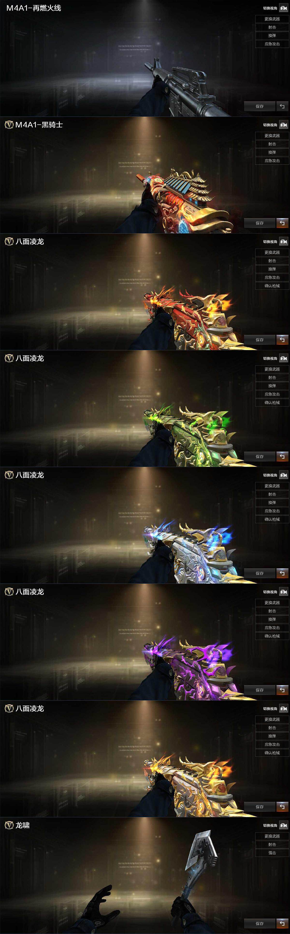 【皮肤】:M4A1-再燃火线,黑骑士-少林,八面凌龙-星守炎龙 皮肤,八面凌龙-森林领主 皮肤,八面凌龙-封心寒雪 皮肤,八面凌龙-不朽玄君 皮肤,八面凌龙-辉耀王者 皮肤,轻型军用手斧-再燃火线