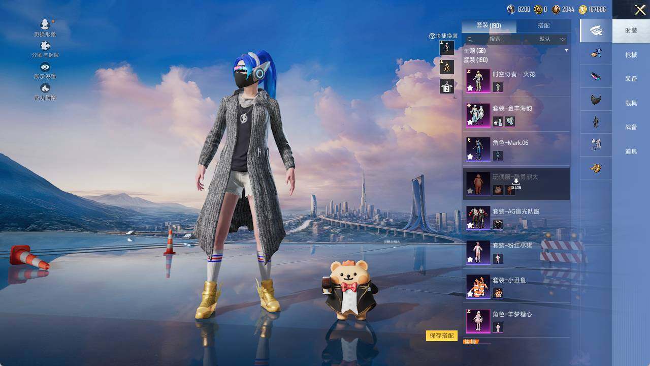 套装-浪漫天命,角色-军刀雅典娜,套装-星河浪客,套装-AG追光队服,套装-龟仙人,套装-暗影哥特,套装-粉红小猪,角色-Mark.06,套装-狂沙舞者,套装-破蛋小黄鸡,套装-漫步者,套装-弄潮海豚,套装-瑞龙福将,套装-团圆交子