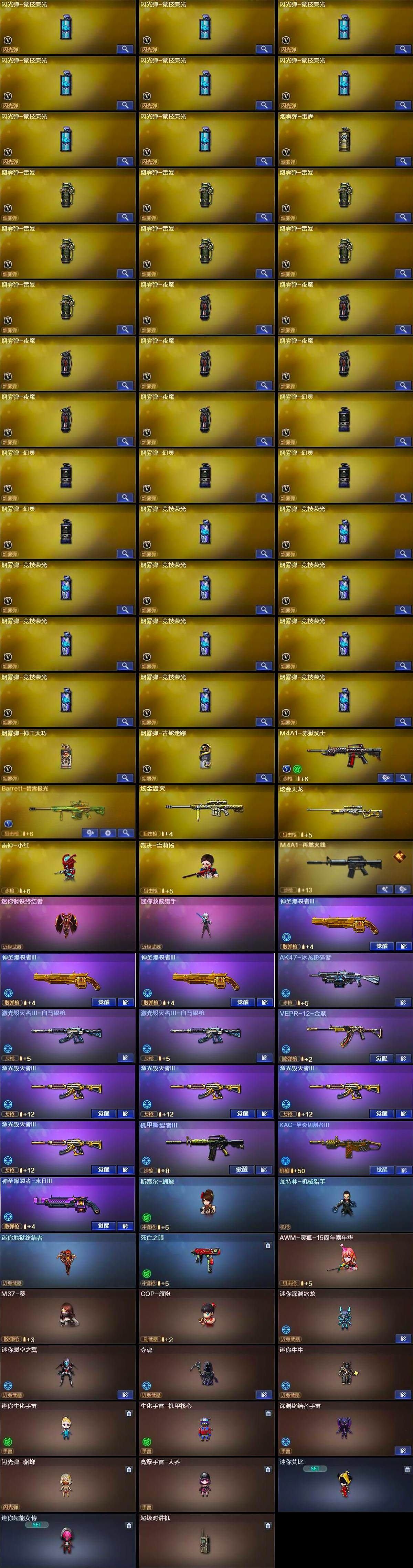 【热门武器】:传说辉光,QBZ03-金色蔷薇,M200-幻神,金色蔷薇-古蛇迷踪,修罗-古蛇迷踪,M200-竞技荣光,死亡之眼,白虎-电玩蓝兔,M4A1-黑骑士*2,汤姆逊-烈龙*8,RPK-盘龙*6,加特林-炼狱*3,斯泰尔-蝴蝶,雷神-小红,裁决-雪莉杨,USP-雷暴,COP-堕天神,沙鹰-修罗*7