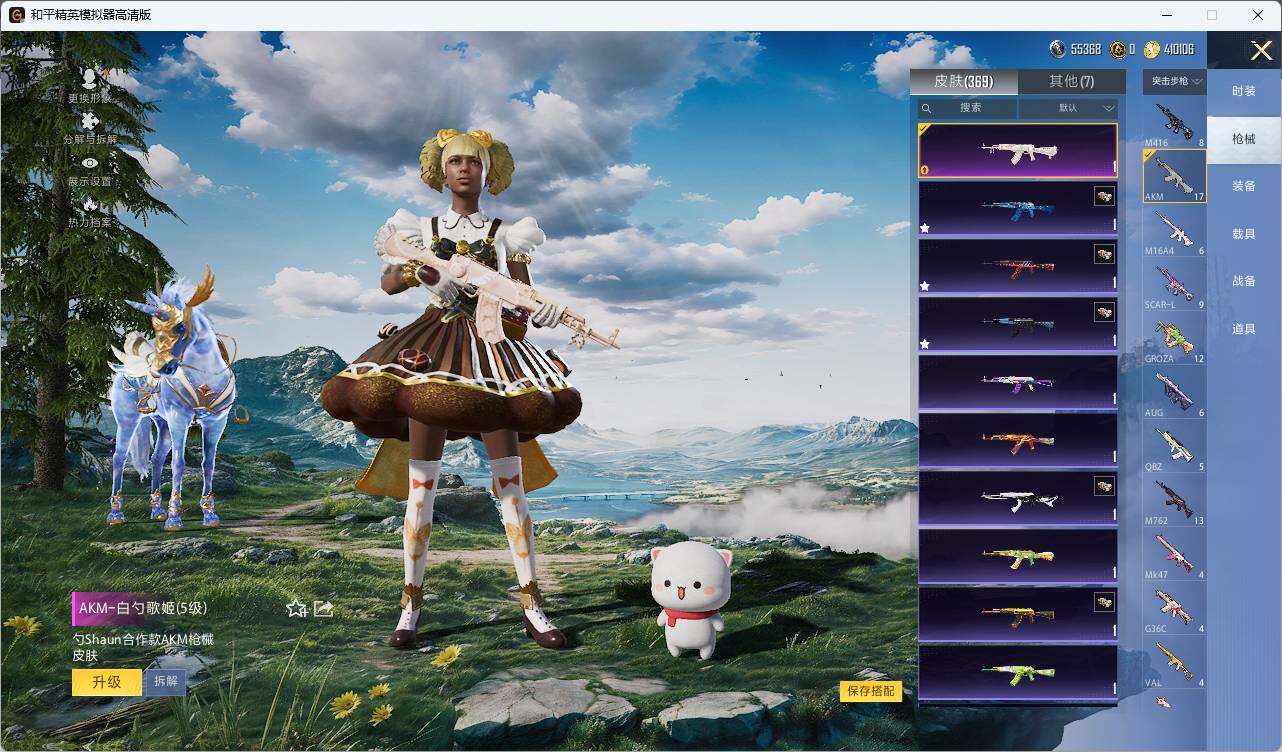 AKM-白勺歌姬,SCAR-L-童趣迷兔,M416-心之恋语,M416-墨龙九天,UMP45-恐龙拽拽,Kar98K-巳巳如意,DP-28-千金淑猫,破片手榴弹-秋玉花灯