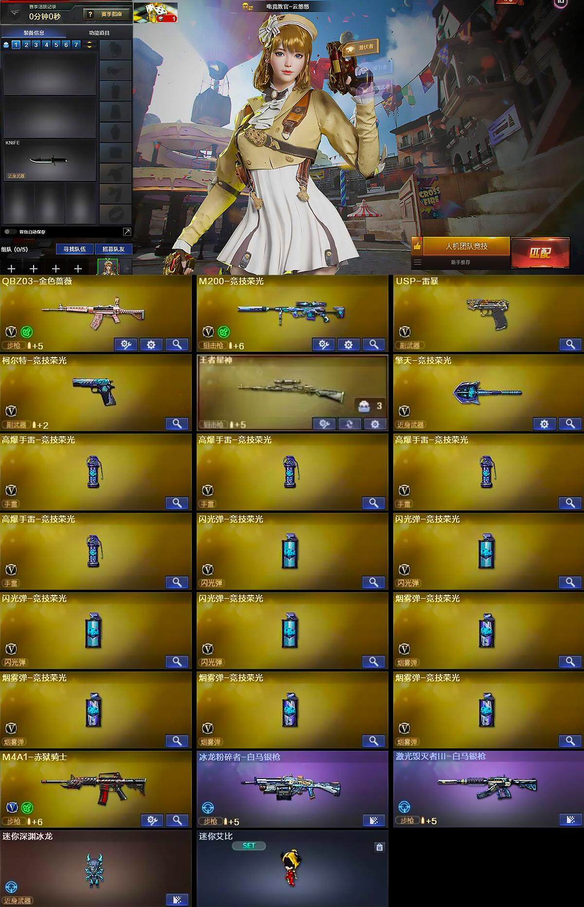 【英雄级武器】:QBZ03-金色蔷薇,M200-竞技荣光,USP-雷暴,柯尔特-竞技荣光,擎天-竞技荣光,高爆手雷-竞技荣光*4,闪光弹-竞技荣光*4,烟雾弹-竞技荣光*4,M4A1-赤狱骑士