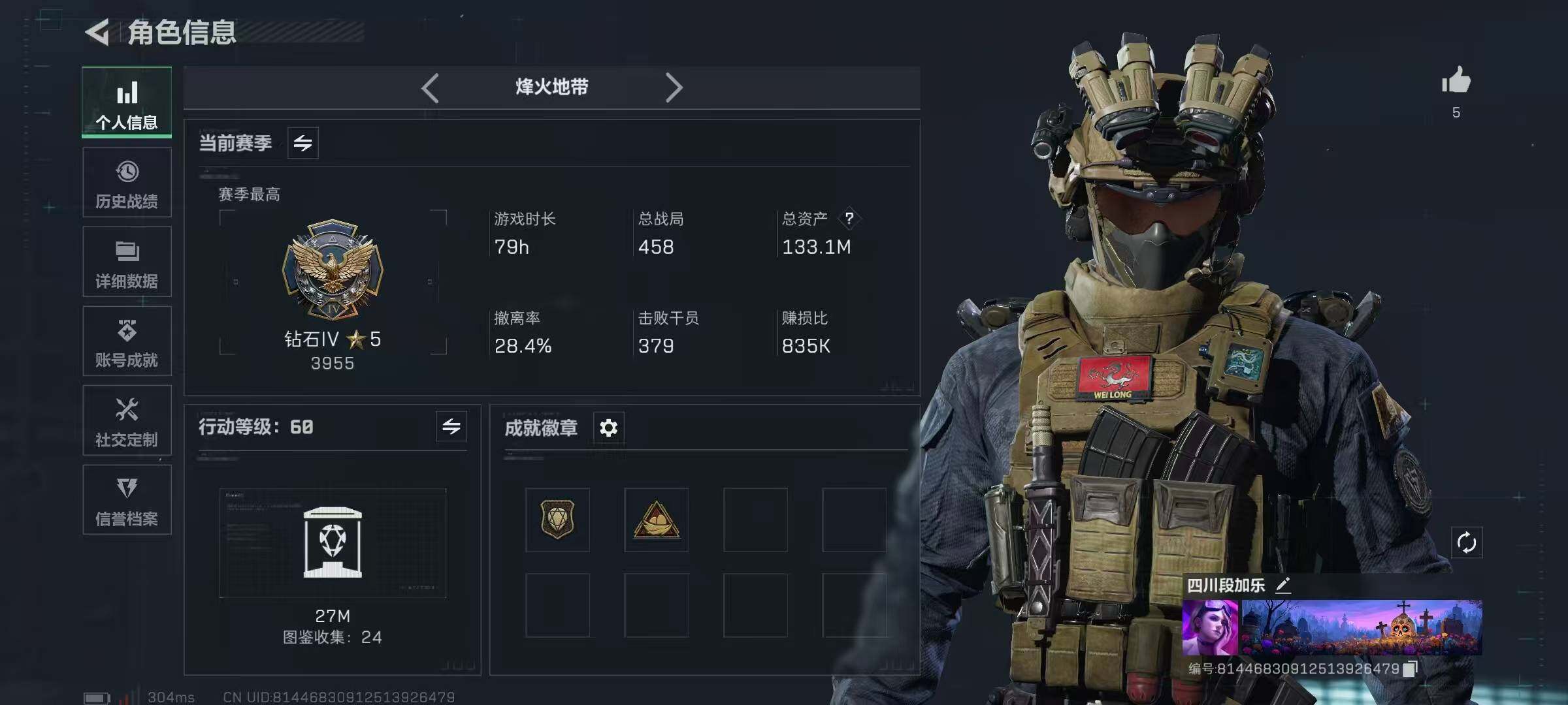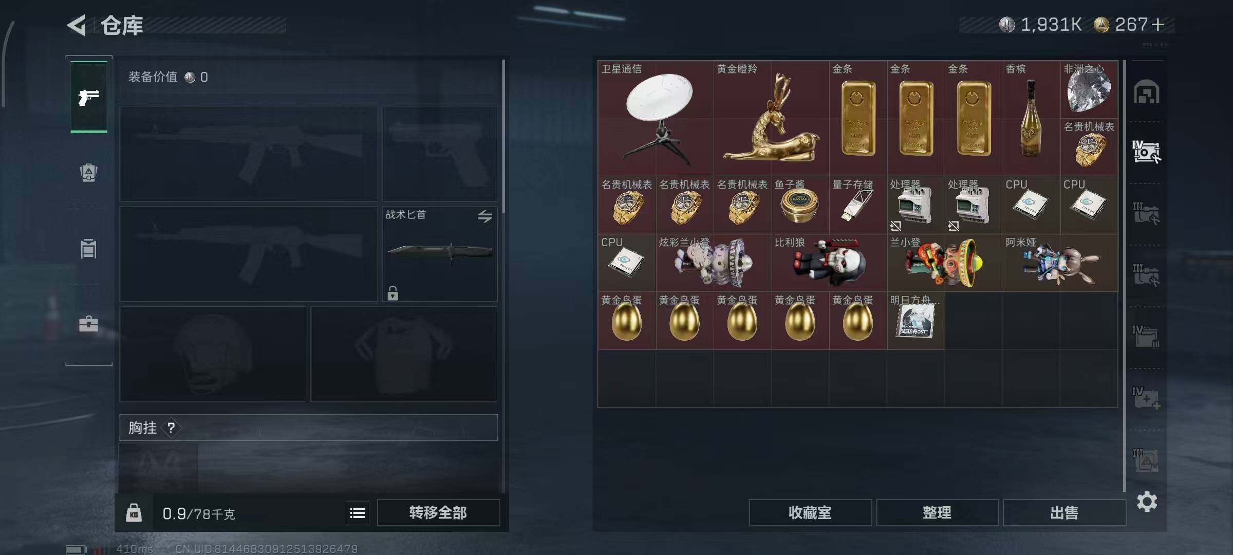 [13764125]1931k哈伏币-109m流动资产-60烽火等级-铂金-1战场等级-无军衔-仓库有颗非洲之心