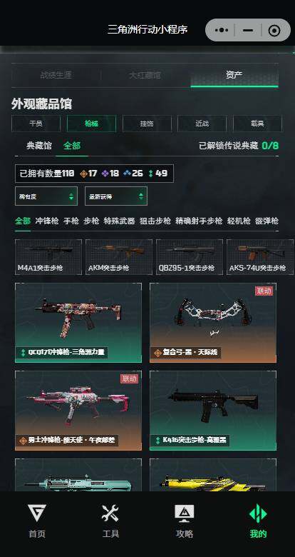 【史诗级普通外观】:ASh-12战斗步枪-无极限,AUG突击步枪-蝮蛇,K437突击步枪-守护者,MP5冲锋枪-战术竞备,SR-3M紧凑突击步枪-战术竞备,勇士冲锋枪-工业狂潮,MP7冲锋枪-守护者,PKM通用机枪-蝮蛇,M250通用机枪-囚徒,Mini-14射手步枪-守护者,SVD狙击步枪-阿萨拉工艺,SV-98狙击步枪-林中猎手,SV-98狙击步枪-囚徒,M700狙击步枪-蝮蛇,AWM狙击步枪-无极限,复合弓-守护者