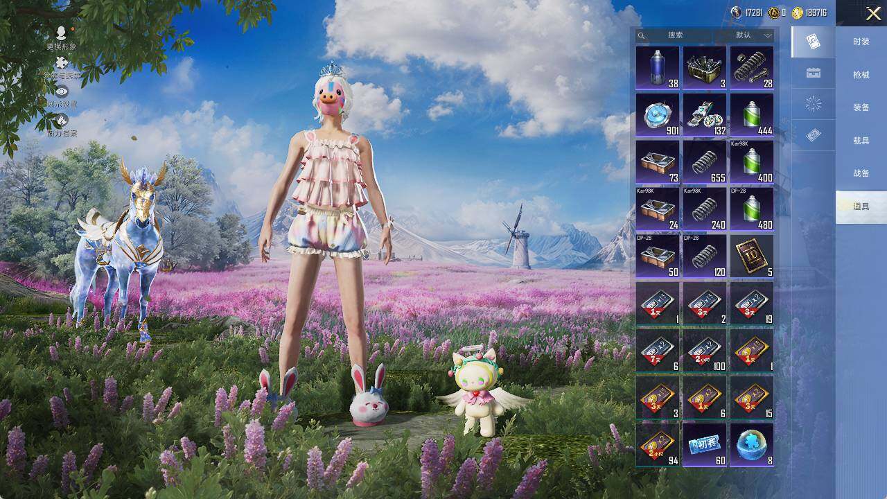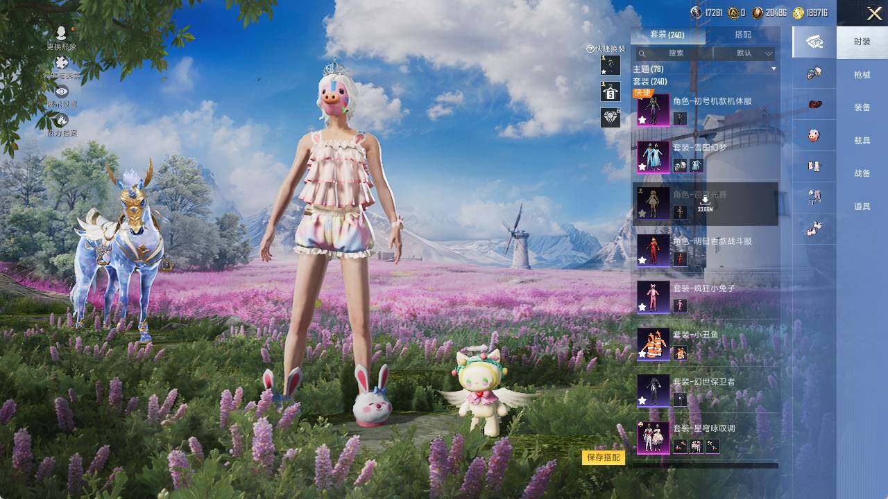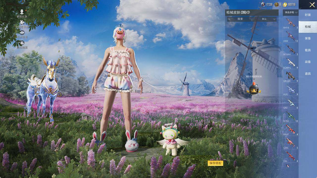 AKM-星际浪客,SCAR-L-纯梦嫁纱,M416-心之恋语,AUG-星梦奇缘,AUG-暖羊咩咩,M762-青锋波束,UMP45-相思残雪,Kar98K-巳巳如意,Kar98K-圣域龙灵,M417-第五大道,平底锅-桃粉嫣然,破片手榴弹-秋玉花灯