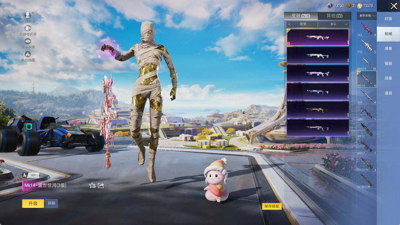 M416-心之恋语,AUG-暖羊咩咩,UMP45-相思残雪,Kar98K-巳巳如意,Mk14-盛世惊鸿