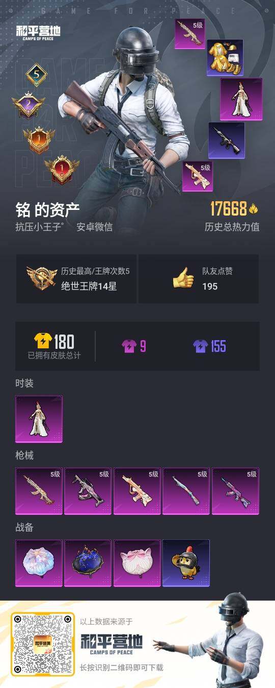 [13506163]绝世印记1/地铁满天赋 安卓 微信-1粉装-5特效枪-1.7w热力值-5王牌印记-30套装-55枪皮【热门品类】:套装-派对舞王,套装-粉红小猪,M416-星际漫游【粉色套装】:角色-萨利娅【粉色枪皮等级】:AKM-炫紫旋律(五级),GROZA-镜光银凌(五级),AUG-暖羊咩咩(五级),M762-鬼刀(五级),Kar98K-巳巳如意(五级)