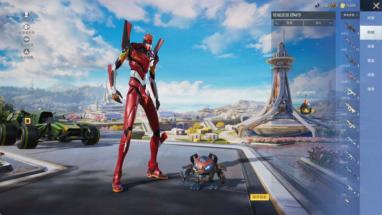 AKM-梦之光华,SCAR-L-童趣迷兔,SCAR-L-青春物语,M416-五爪金龙,UZI-筑梦精灵,UMP45-雪国精灵,Vector-环太平洋,Kar98K-巳巳如意,SLR-暗夜玫瑰