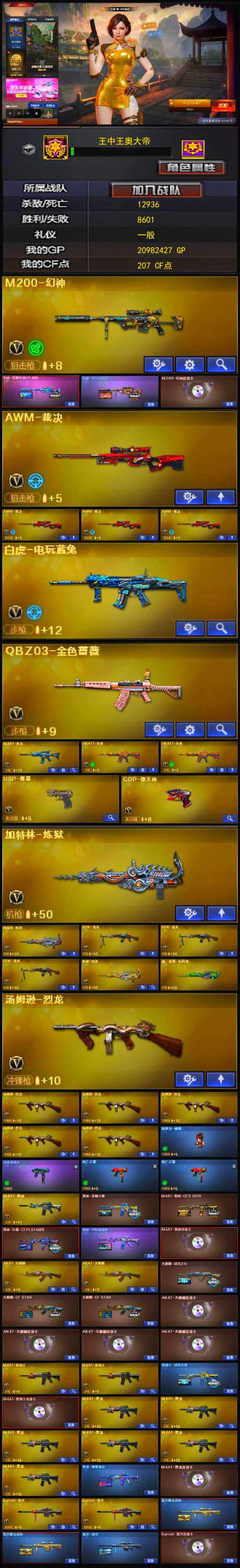 - [12031661]【商品标题】:山东一区-24V-1王者-0炫金 【传说武器】:传说圣谕 【热门武器】:传说圣谕,QBZ03-金色蔷薇,M4A1-青龙,M200-幻神,金色小号,牛牛-AK47,金刚伞 【音效卡】:Barrett-极光音效卡,AWM-裁决音效卡 【稀有皮肤】:M200-幻神-荣耀世冠白鲨,幻神-动感闪耀 皮肤,雷神-R.LGD-CFPLS18冠军,黑龙-冠军之武 【角色】:王者零-华冠丽服,灵狐者-职业经理,铁骑荣耀 【人偶武器】:白虎-迷你小艾,AWM-灵狐-15周年嘉年华,牛牛-AK47 【挑战大师】:神圣爆裂者-末日III,激光毁灭者III-白马银枪,冰龙粉碎者-白马银枪 【英雄级武器】:幻灵之锋,烈火-动感闪耀,天神-动感闪耀,屠龙-动感闪耀,手雷-动感闪耀,QBZ03-金色蔷薇,M4A1-青龙,无影-神兵利器,M4A1-雷神,M4A1-黑龙,Barrett-极光,AWM-裁决,M200-幻神,M4A1-赤狱骑士,沙鹰-天神*2,擎天-云海游龙 【特殊枪械】: