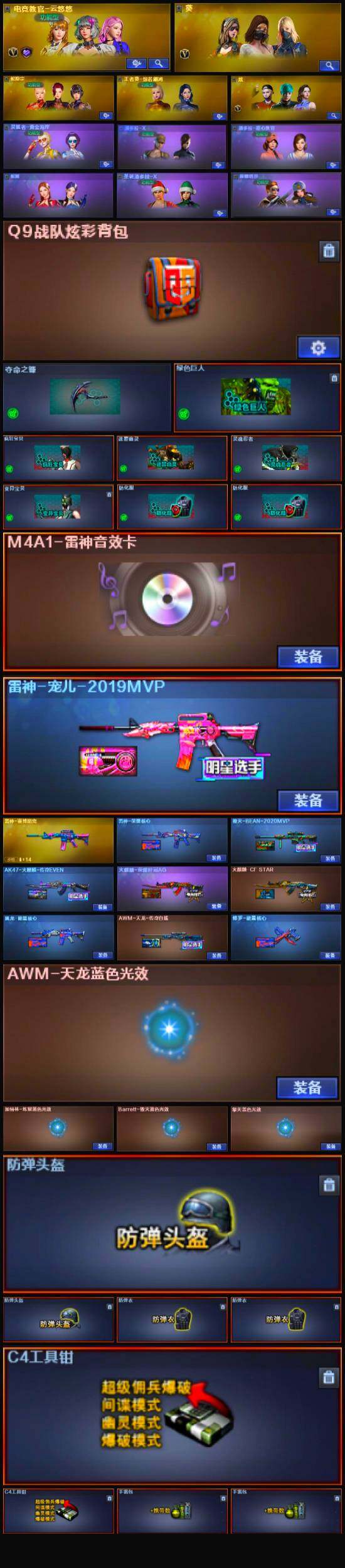 【道具】:Q9战队炫彩背包,炫彩背包,救世主-黑桃战神,绿色巨人,灵魂忍者,变异宝贝,迷雾幽灵,夺命之镰,防化服*2,枪王排位29赛季金色流光,防弹头盔*2,防弹衣*2,C4工具钳*2,手雷包*2